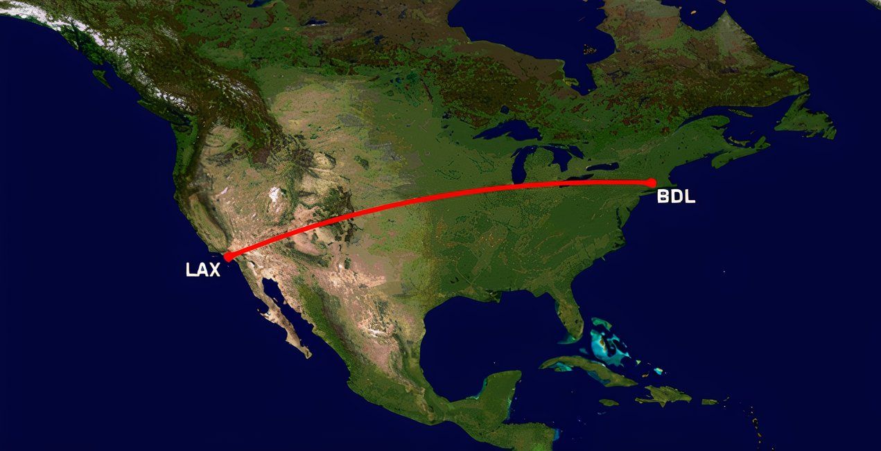 環境DIIOは、キャリアの典型的な国内飛行が1,049海里(1,973 km)であることを示しています。ハートフォードからロサンゼルスからロサンゼルスは、今年の夏にジェットブルーの8番目に長い国内の提供になりました。