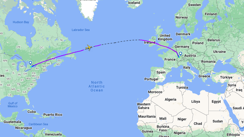 8月のエアカナダの777-200LRSの3番目に長いルートは、トロント(YYZ)とチューリッヒ(ZRH)の間です。 4,045マイル(6,510 km)で、このルートは航空会社で最も長い777-200LRルートの半分をわずかに超えています。 YYZ – ZRHフライトの予定された飛行時間は8時間10分ですが、ほとんどの航空機は約7時間でヨーロッパに到着します。