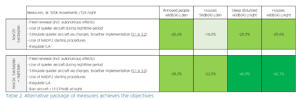 飛行削減は、バランスの取れたアプローチの教義にも反します。これは、運用上の制限は、他の措置が失敗した場合にのみ最後の手段と見なされるべきだと述べています。 KLMは、フライトカットを必要とせずに、独自の提案された騒音低減対策がターゲットを満たすのに十分であると考えています。