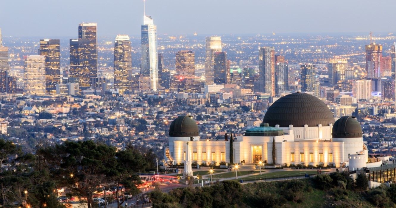 ロサンゼルスのスカイラインとグリフィス天文台公園