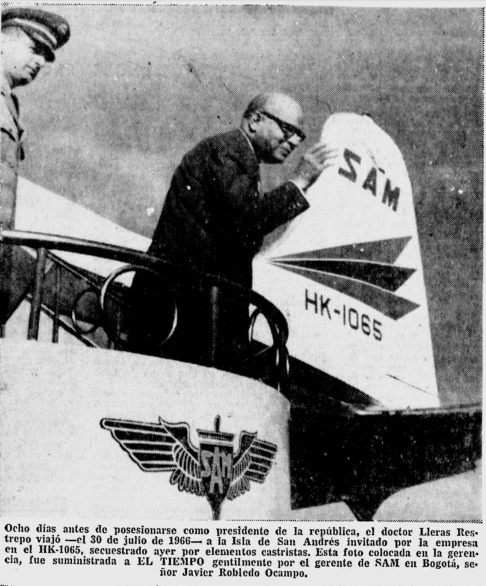 ハイジャック時に印刷されたコロンビアのエル・ティエンポ紙の報道によると、武装した男2名がSAMコロンビア・ロッキードL-188Aエレクトラ旅客機を操縦していた乗組員を脅迫したという。彼らはまず20万ドル(その後30万ドルに増額)とコロンビアの左翼囚人140人の釈放を要求した。コロンビア政府は最初から交渉を拒否し、航空会社が責任を持って交渉を行った。ハイジャック犯は最終的にアルバで集めた5万ドルで和解した。