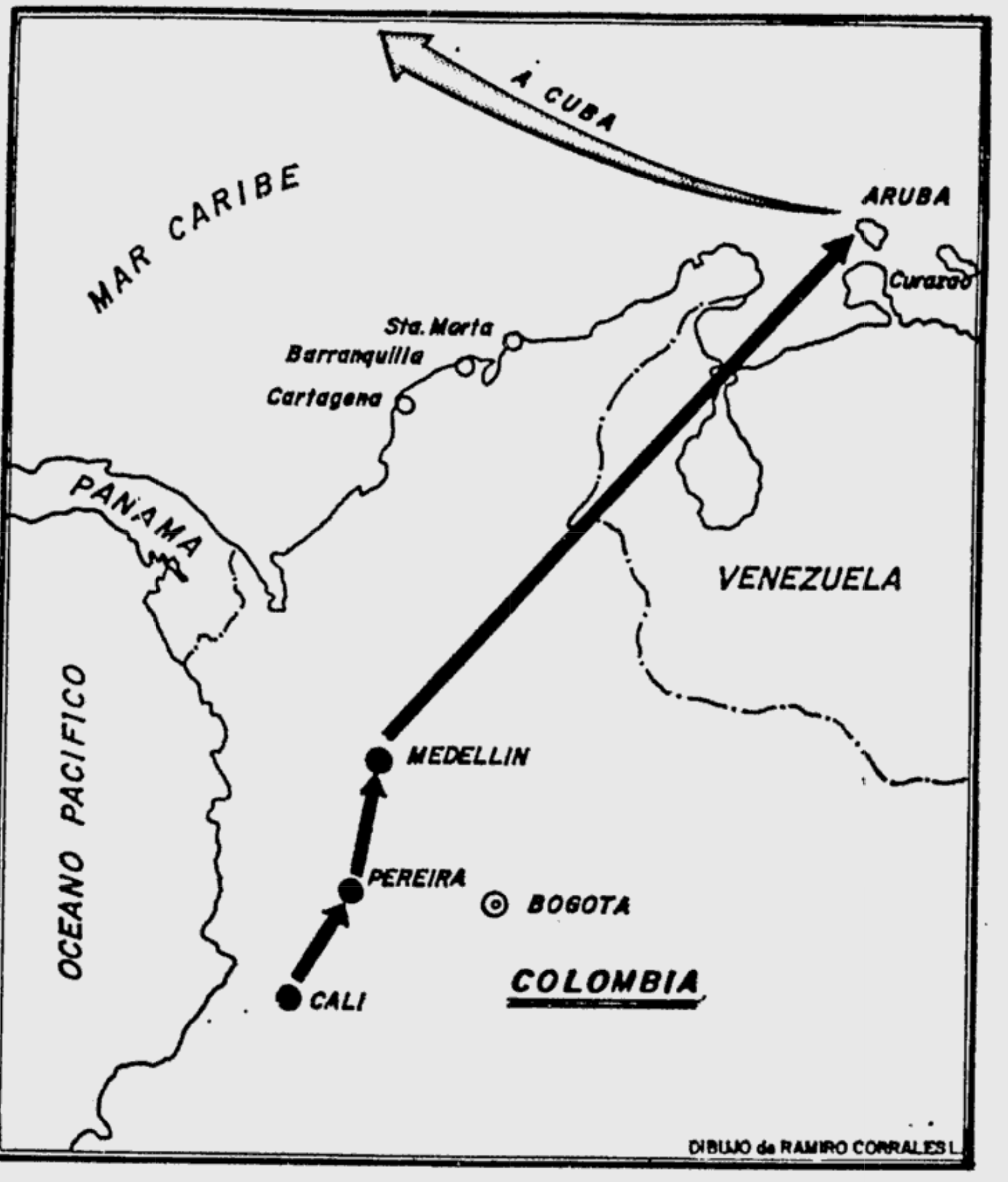 「ほぼ18か月で7機目となる別のコロンビア航空機が昨日、バランキージャとカルタヘナ間のルートを完了する際にキューバへの飛行を余儀なくされた。登録番号HK-1065のこの飛行機は、リボルバーで武装した人物によってハイジャックされ、パイロットを脅迫し、カルタヘナ着陸予定のわずか5分前に飛行経路から逸脱させた。」