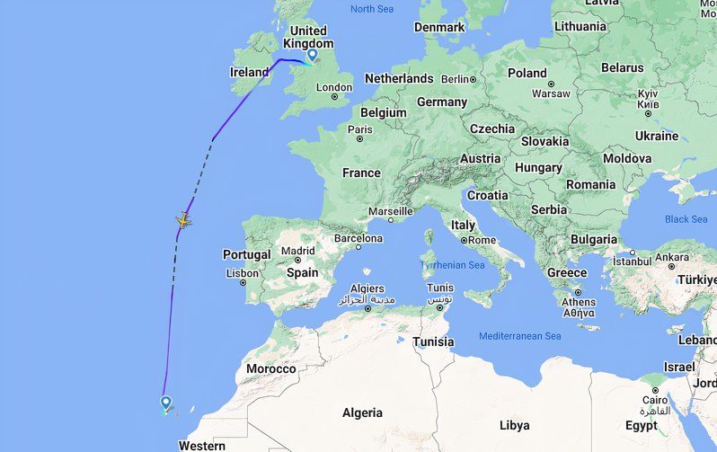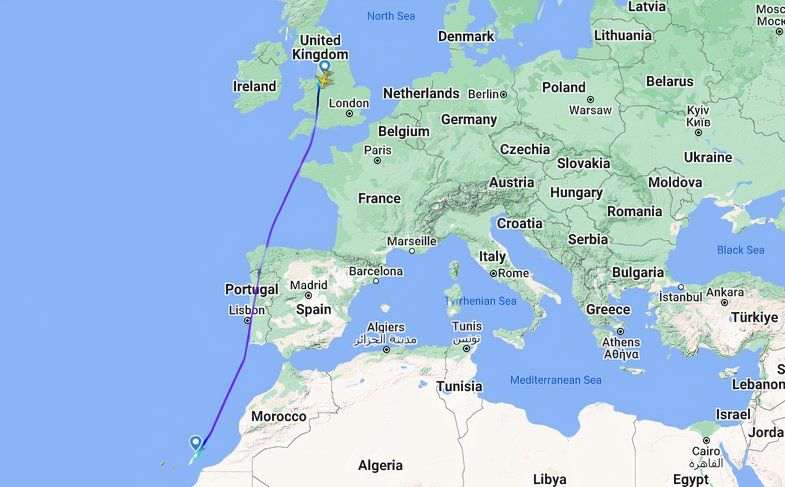6月、JET2のA321neosの3番目に頻繁なルートがマンチェスターをカナリア諸島に再び接続します。今回は、A321neosは島の最東端のランザロートに飛びます。航空会社のマンチェスター(男) - ランザロート(ACE)廊下では、各方向に28便が見られ、毎日平均して1回の往復を平均します。各1,780マイル(2,865 km)のフライトは約4時間続きます。