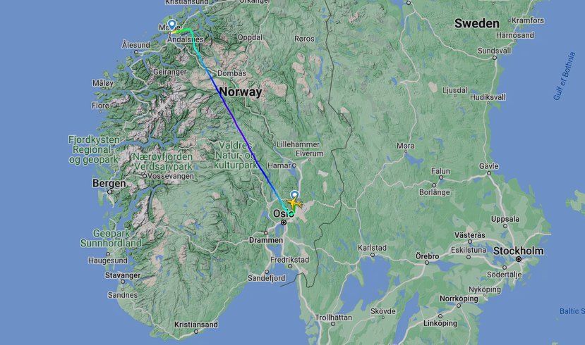ノルウェーのフライト430人は165人の乗客を運んでいて、6人の乗組員が乗船していました。によるとFlightAwareデータ、航空機は、午後6時2分にオスロガルダルモン空港(OSL)を出発したとき、予定47分遅れていました。 737は32,000フィートのクルーズ高度に登り、航空機がモールデへの降下を開始する前に数分間残っていました。フライトは、オスロとモールデの間の北西に向かう北西部のほぼ直接的なルートを飛行し、通常のプロファイルを飛行しました。