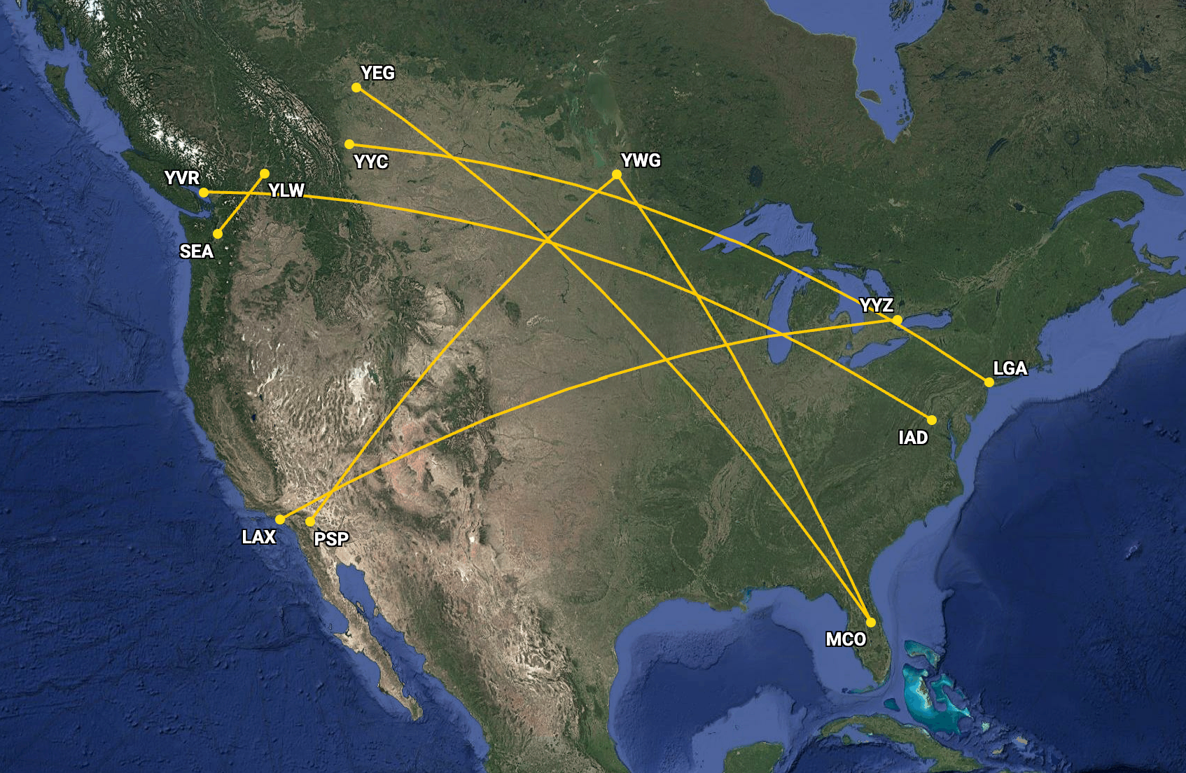 同時に、需要により航空会社は少なくとも一部の輸送能力の調整を余儀なくされているため、以前に予定されていたカナダから米国への一部の路線は離陸しないことになる。これらは、Cirium の Diio Mi のデータを使用して以下に表示されます。