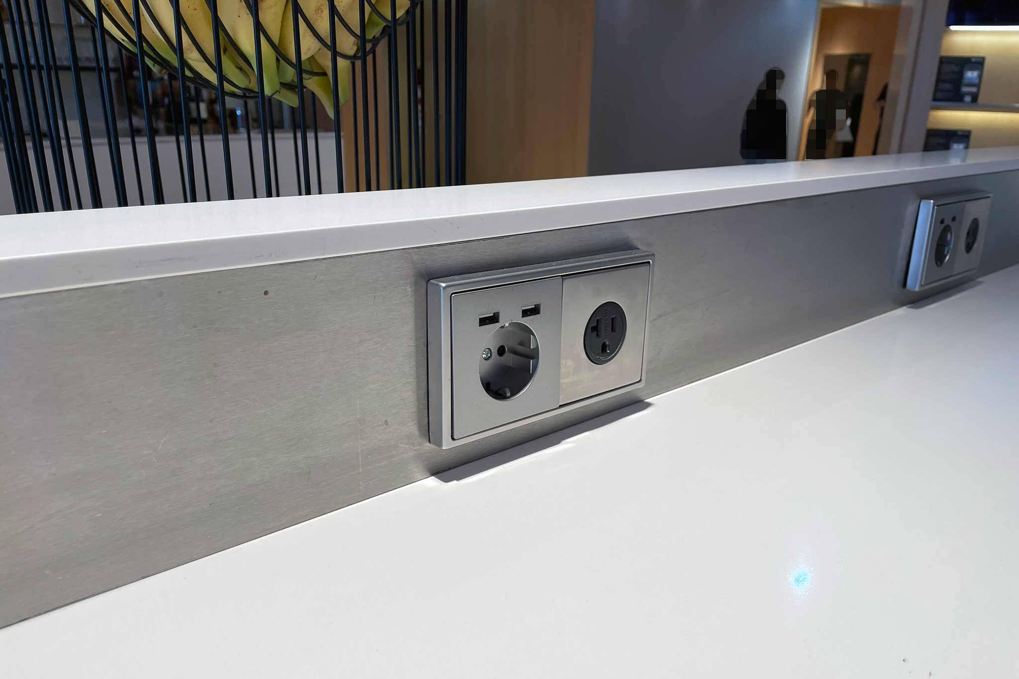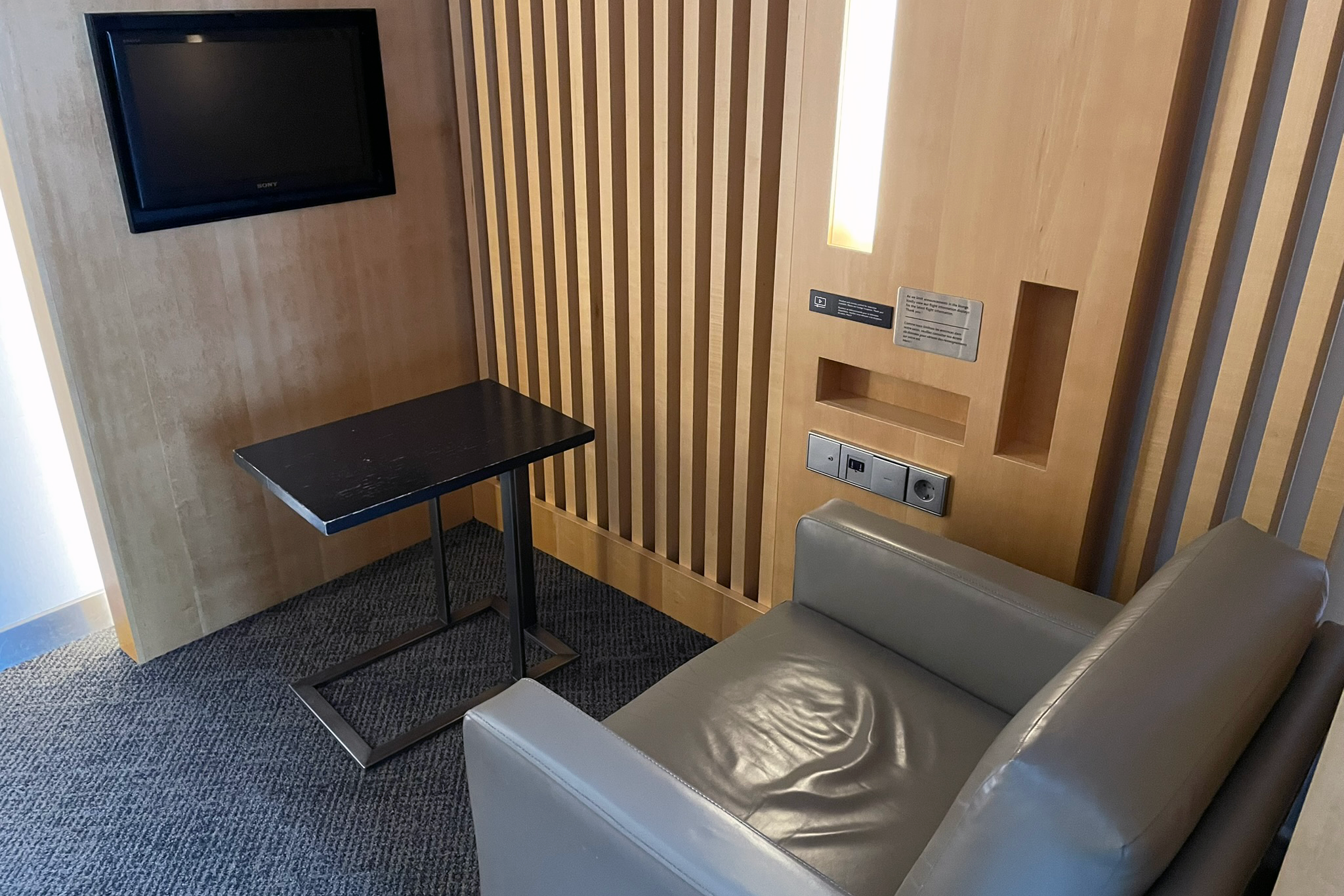 座席の近くの床を含め、ラウンジの周りにたくさんのソケットが散らばっていました。残念ながら、私の座席の隣のソケットは機能しませんでした。ソケットのほとんどはEUスタイルでしたが、USB AおよびCポートに加えて、北米ソケットもいくつかありました。