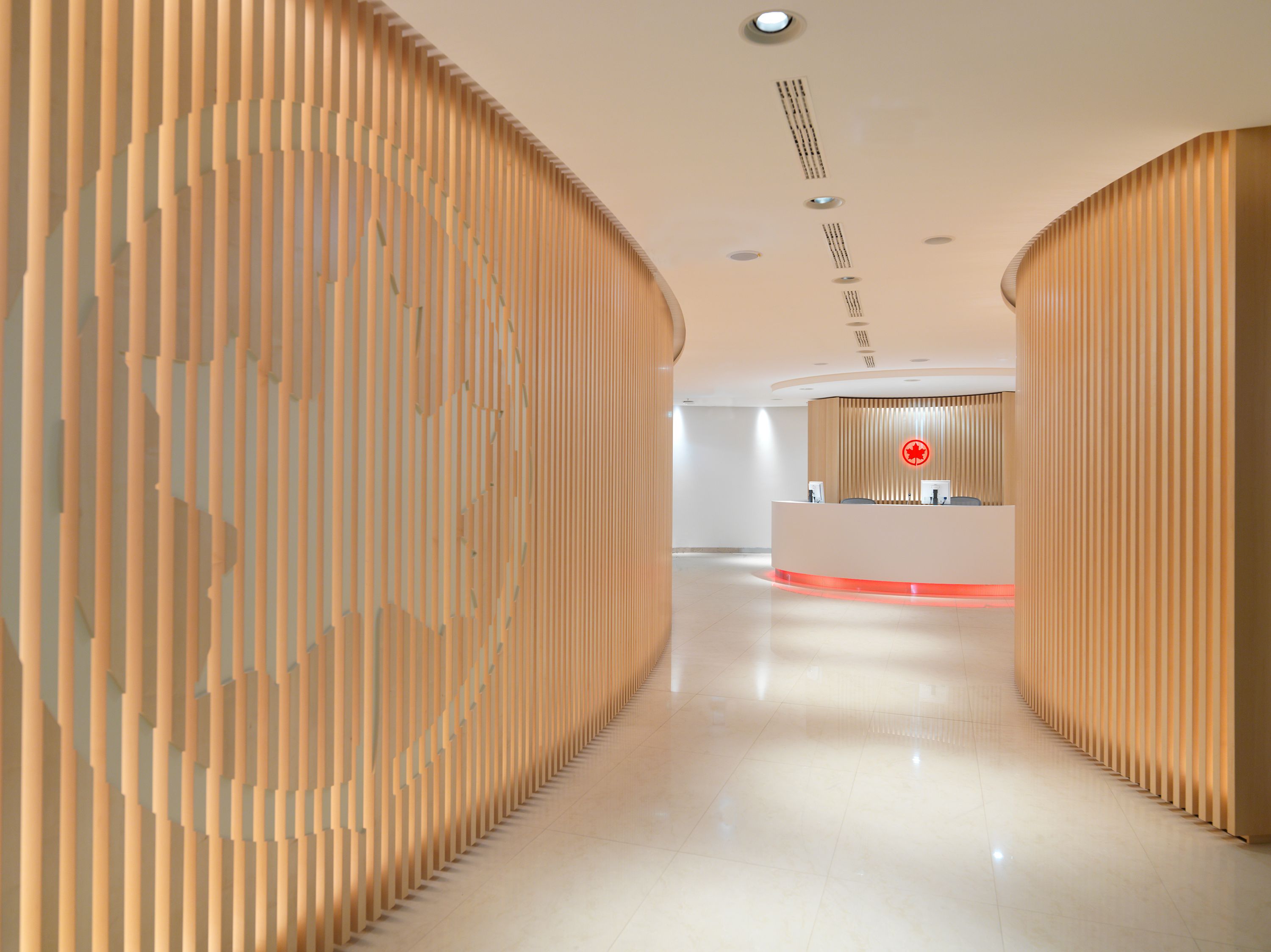 エアカナダメープルリーフラウンジは、ターミナル1のBエリアの非スケンゲン部分にあります