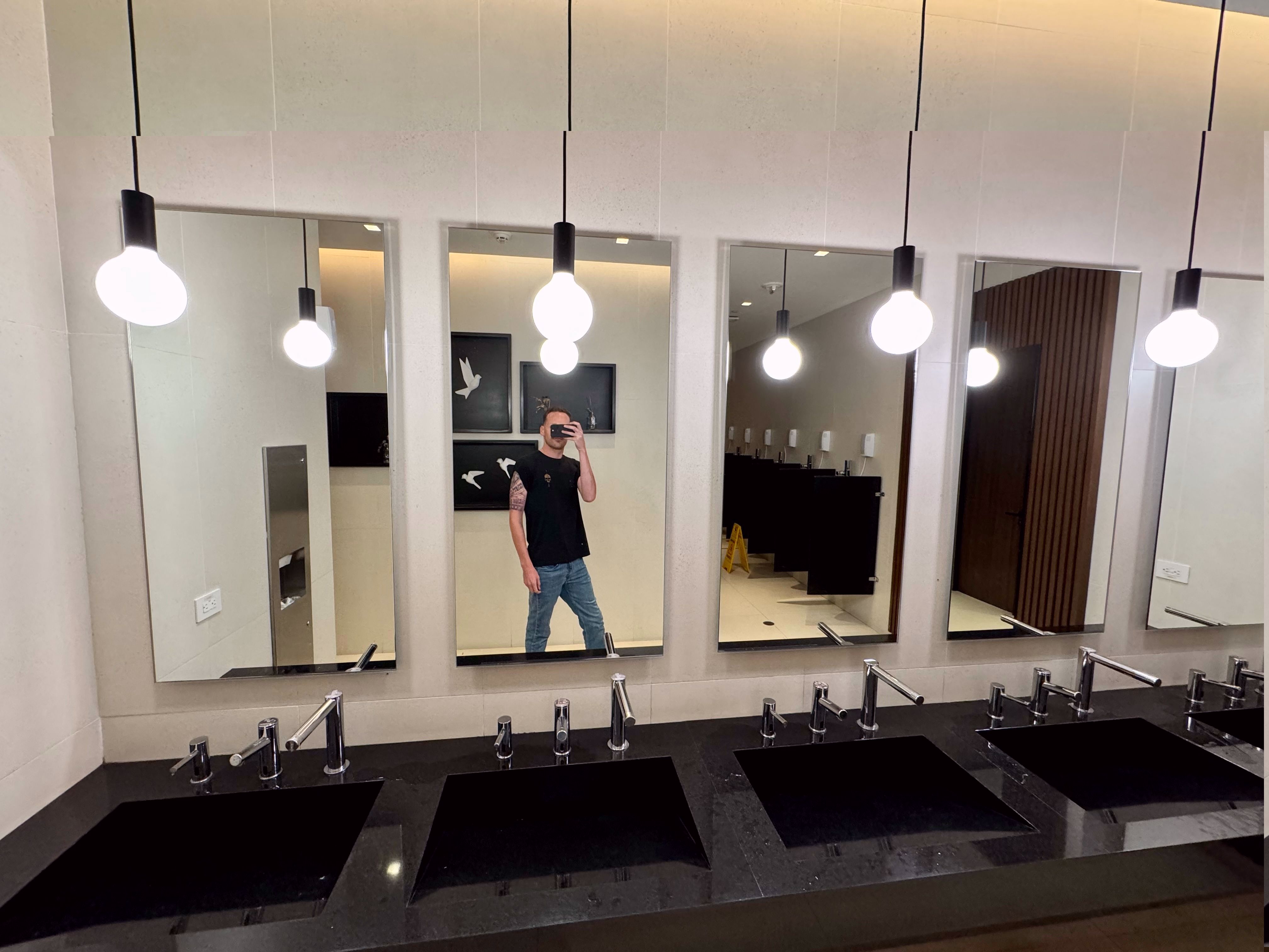 バスルームエリアは設備が整っていて、白い大理石を背景にたくさんの屋台が設置されていました。シャワーも6つありましたが、清掃のため閉鎖されていたため撮影できませんでしたが、ドアの内側を覗くと、明るく開放的な空間があり、複数のシャワー室がありました。