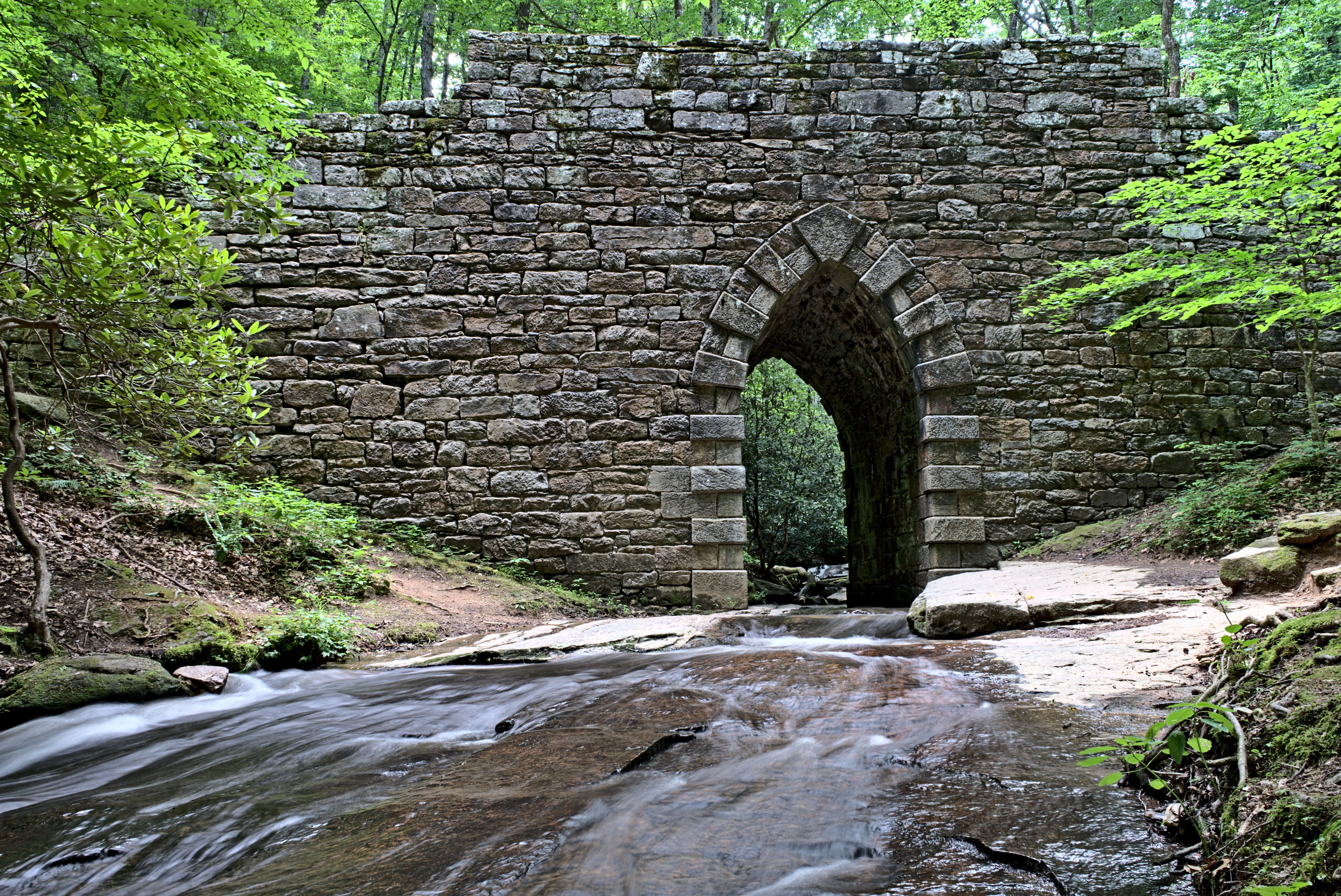歴史的なポインセット橋は、トラベラーズ レストの北、国道 25 号線のすぐそばにあり、幽霊が出るという永続的な物語があります。 1820 年に建設され、高さ 14 フィートのゴシック様式のアーチがそのまま残っており、リトル ギャップ クリークを越えて 130 フィートまで伸びています。