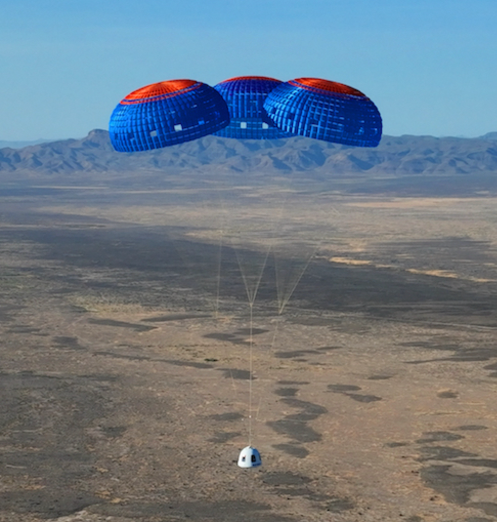 「新しいシェパード宇宙飛行士は、音速の3倍以上の速度で宇宙に向かって上昇します。彼らは、地球上空62マイル(100キロメートル)の国際的に認められた宇宙の境界であるカルマン線を通過し、その後バックルを外して無重力状態で浮かび、地球を見つめます。乗組員はパラシュートの下で静かに帰還し、永遠に変わりました。」 – ブルーオリジン.com