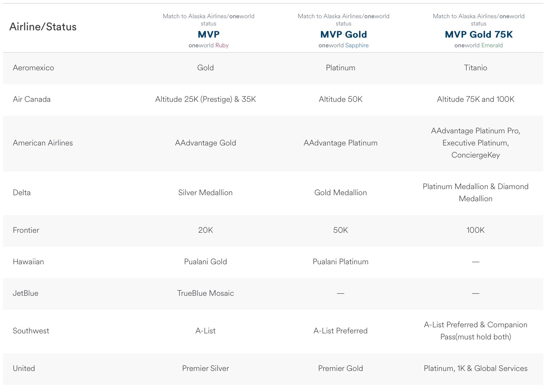 のステータスマッチページ現在、会員はマイレージ ステータスを取得して新しいパートナーシップを利用できるようになりました。資格を得るには、旅行者はアラスカ州の会員である必要があります。