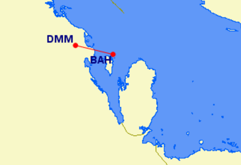 世界最短の商用便の 1 つは、キング ファハド国際空港とバーレーン国際空港 (BAH) からのものです。 2 つの都市間の距離はわずか 47 マイル (76 km) です。