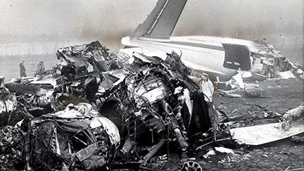 飛行機は機首を側転させた。エンジンと後部胴体が分離し、航空機は衝突経路を継続しました。後部胴体は垂直尾翼上で逆さまに静止した。前部の胴体と主翼は側転して直立して着地し、後方に滑った後、火災が右翼、コックピット、前部客室を焼き尽くした。