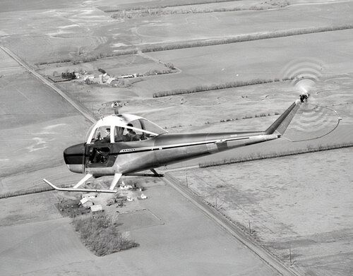 - 機体:航空機は、セスナの固定翼航空機によく似た半モノコックの機体を備えており、その時代のヘリコプターの間で独特の外観を与えました。