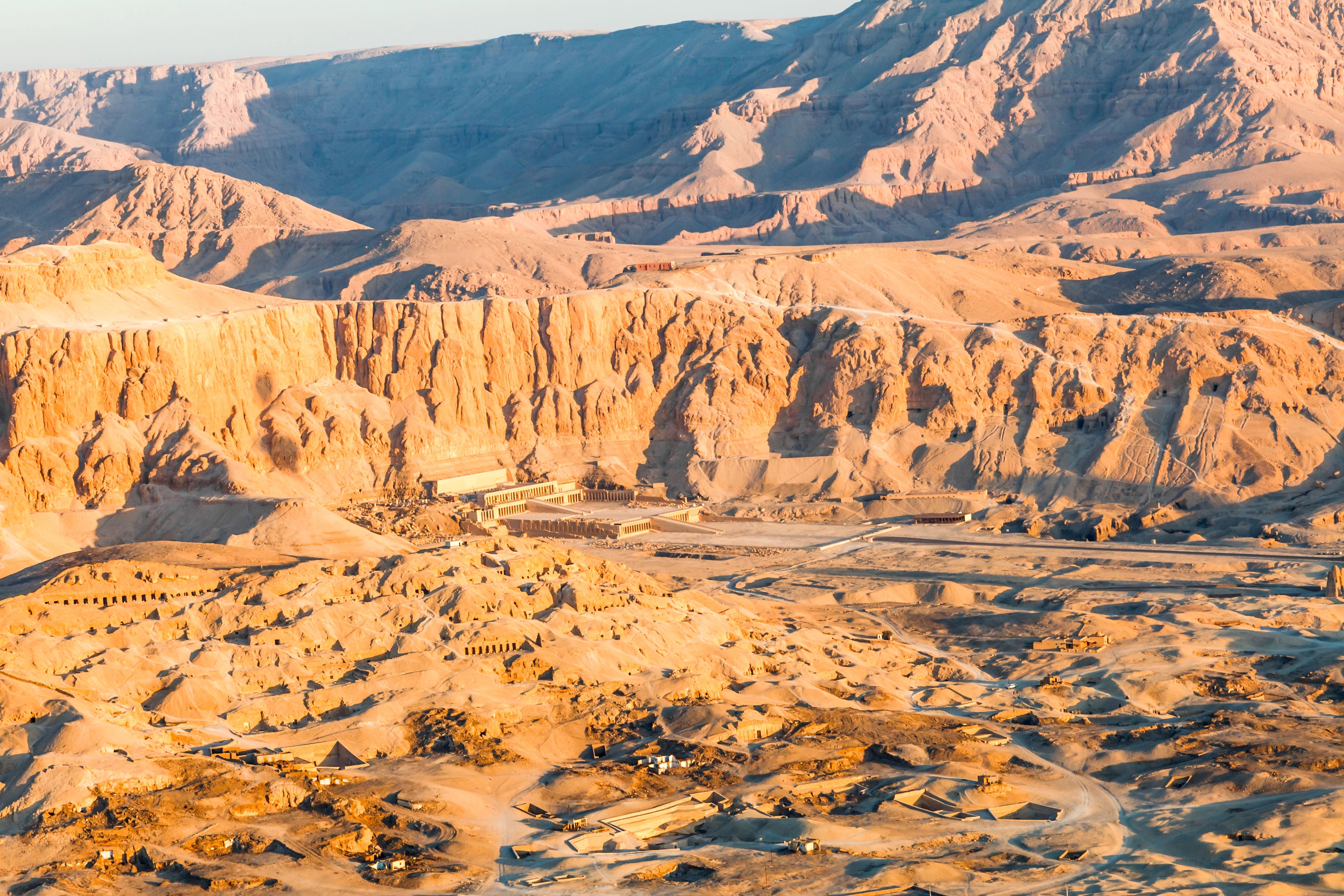 エジプト、ファラオ・ハトシェプスト神殿の空撮