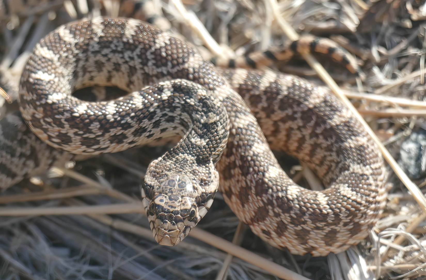 ビッグホーン川とその周囲の土地には、ガーターヘビ、ブルヘビ、ラバーボア、レーサー、そして最も有名なのはプレーリーガラガラヘビなど、多くのヘビ種が生息しています。国立公園局は次のように述べています。プレーリーガラガラヘビはビッグホーンキャニオンNRAで最も一般的なヘビであり、120,000エーカーの地域では平均して1エーカーあたり1匹のガラガラヘビがいると推定されています。プレーリーガラガラは体長約 3 フィートに成長し、三角形で平らな頭を持ち、鱗には特徴的な楕円形の斑点があり、非常に有毒な毒を持っています。