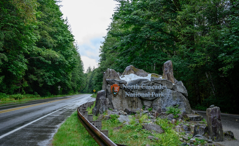 ノースカスケード国立公園の入り口サインワシントン州ワシントン州マーブルマウント、USACREDIT:ShutterStock