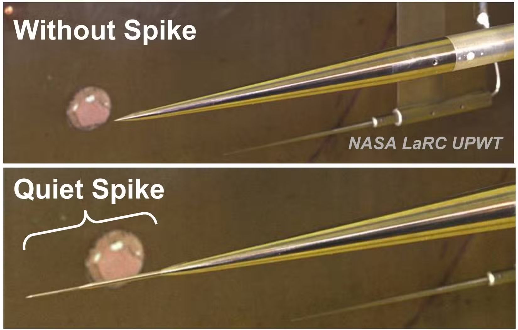 この拡張されたスパイクは、複数の小さな衝撃波を作成することによって機能し、互いに平行に移動しました。これは、単一の大きな衝撃波の作成を防ぐエンジニアリング戦略です。航空機によって作成された衝撃波を破壊することにより、テストベッドジェットは、その超音速ブームが地面の観察者に与える影響を大幅に減らすことができました。