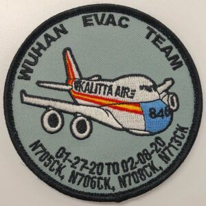 Kalitta Airは、2020年に米国国務省に雇われ、Covid-19のパンデミック中にWuhanからアメリカ市民を避難させました。カリッタ航空機で「ウハン・エヴァックチーム」を称える記念パッチは、米国外交博物館。