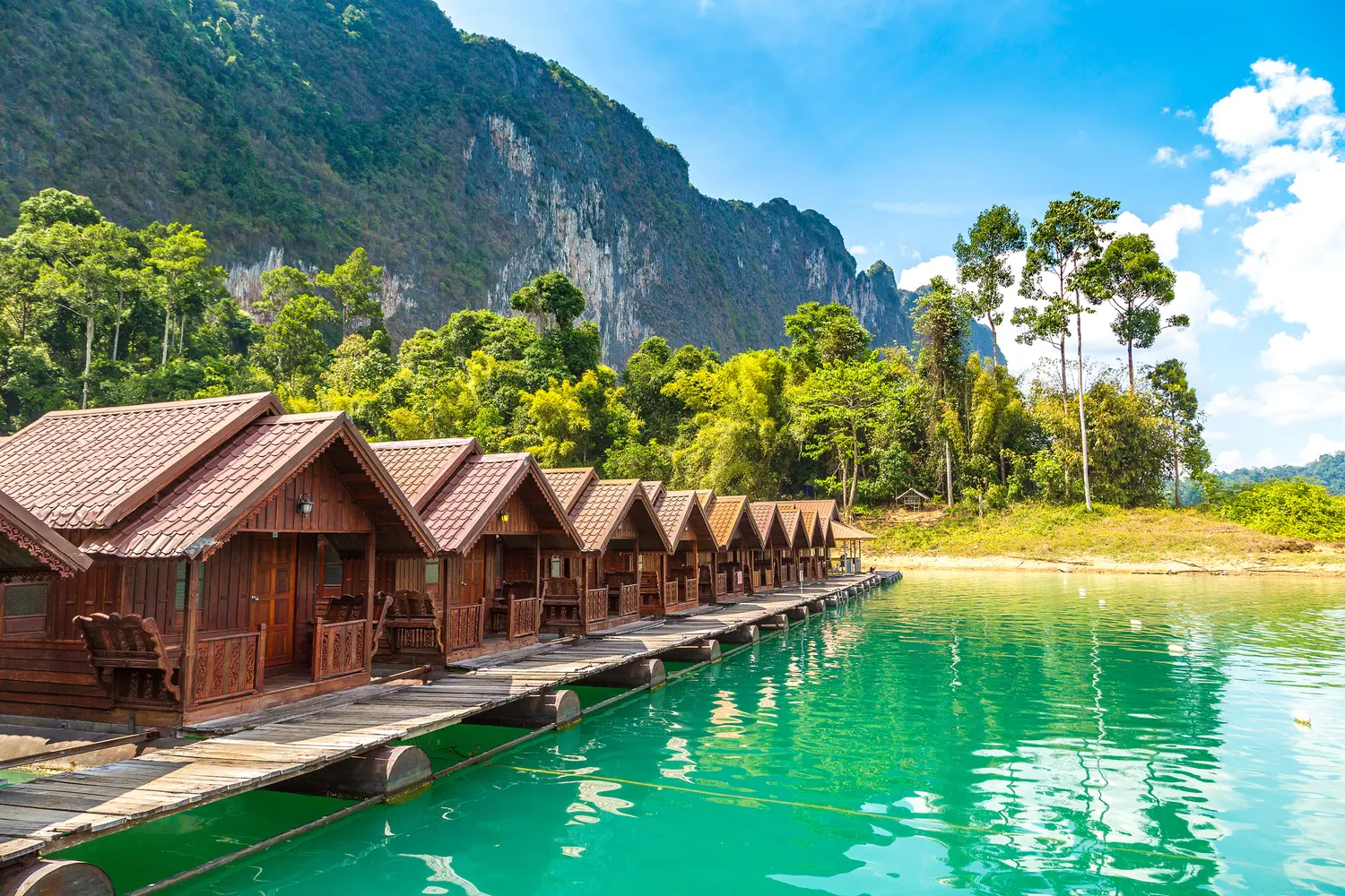 カオソック国立公園内にある水上バンガローに宿泊することは、多くの旅行者の一度は行きたいリストに載っており、事前に予約すれば驚くほど手頃な価格で泊まることができます。公園内には約 15 の水上ホテルがあり、その 1 つに泊まるメリットは、文字通り目の前で湖でのアクティビティが楽しめることです。これらの水上ホテルでは、カヤックのレンタルや水泳のほか、洞窟、滝、ハイキング コースへの日帰り旅行も提供しています。