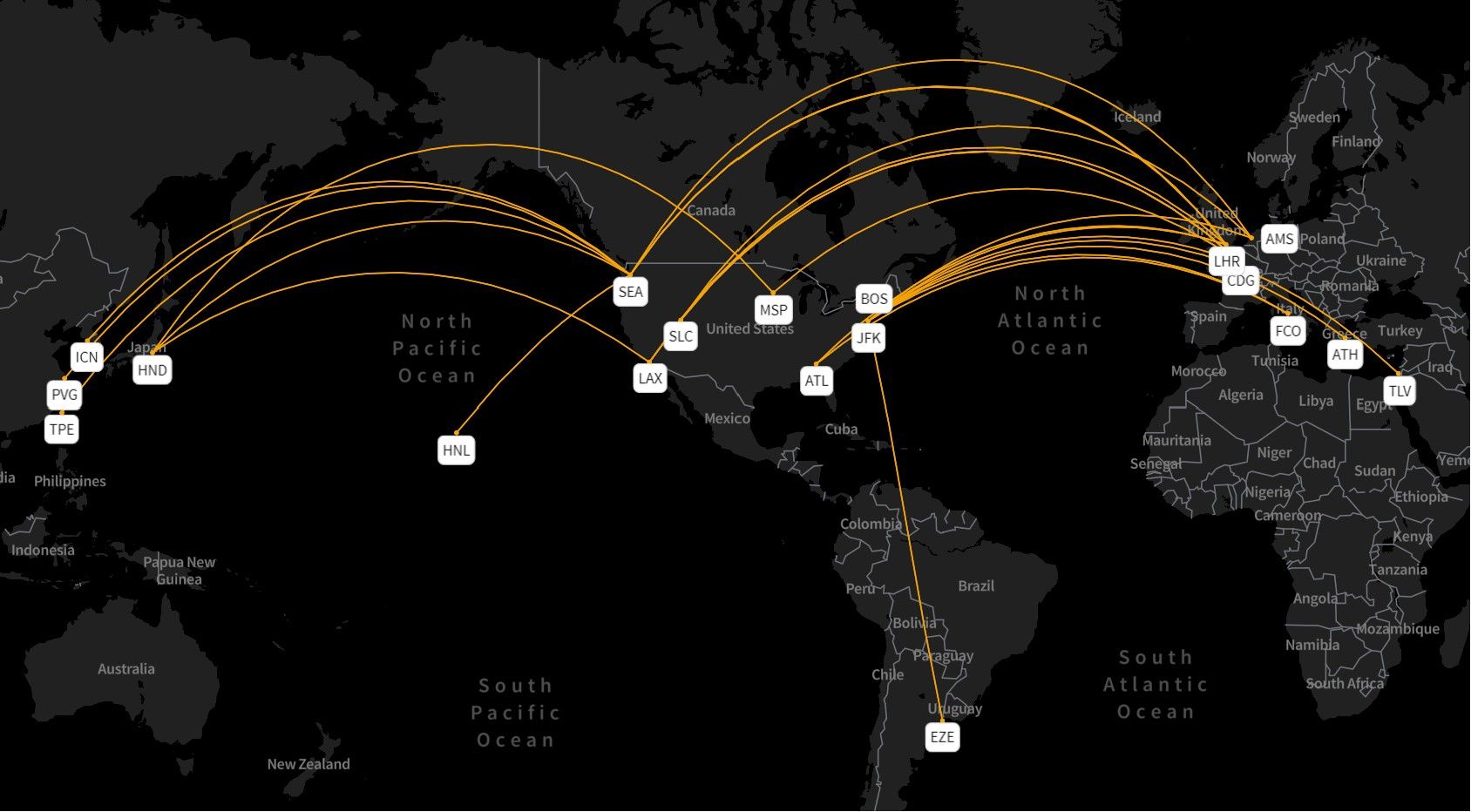 OAGのデータを調べると、デルタ航空は今年、米国の全便の半分以上がA330neoで運航されることになる。4月~6月。同機は国内線(シアトル-ホノルル)を含む23路線を運航する。以下に示すそのネットワークには、まったく新しいデルタ路線であるシアトルから台北までが含まれています。毎日運行されており、6月6日に台湾に向けて出発します。