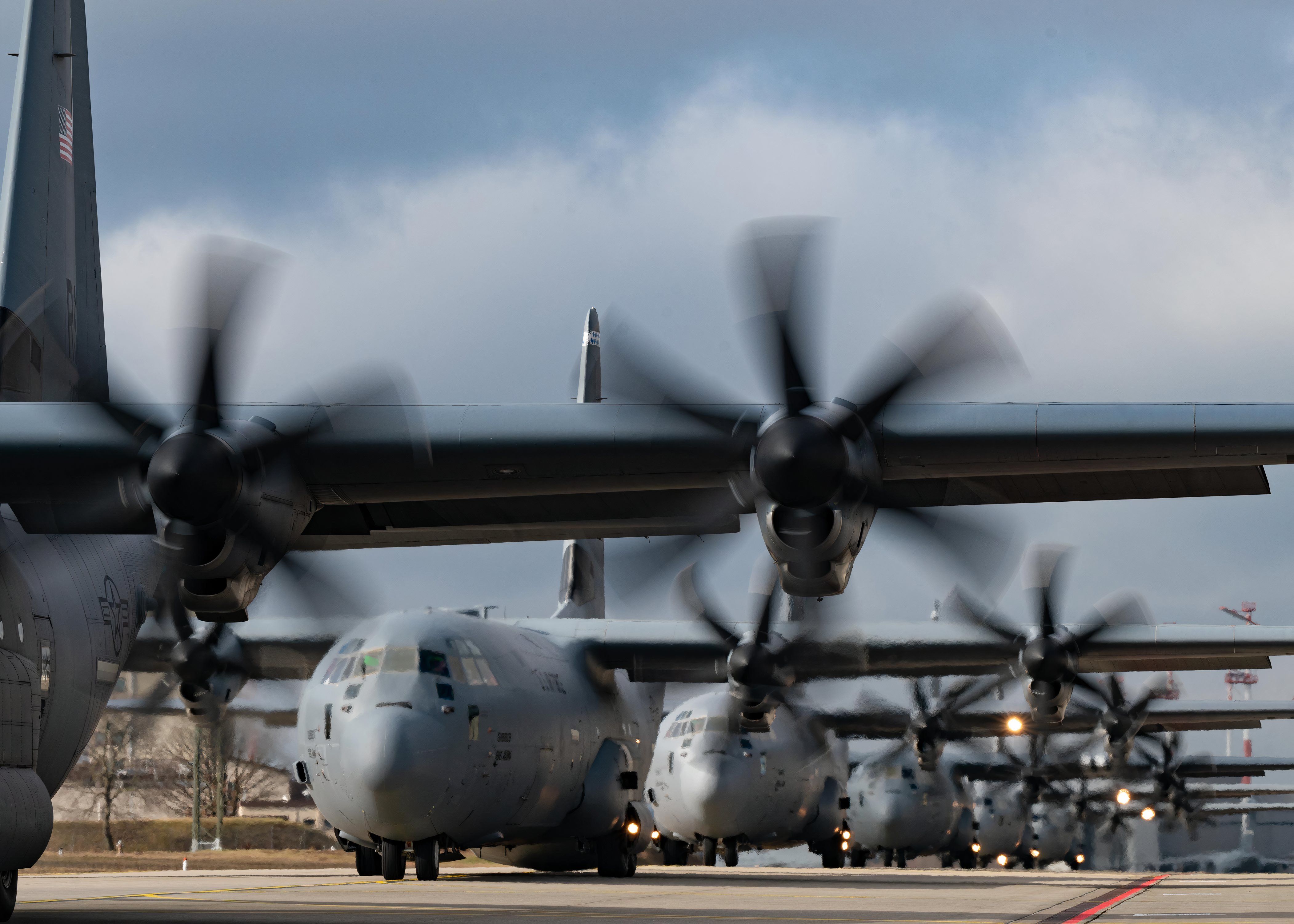 C-130 Herculesは、米国と米国の同盟国とパートナーのほとんどの「The Tactical Airlifter」です(民間のL-100バリアントもあります)。航空機は広範囲に変更され、C-130Jスーパーヘラクレスバリアントに更新されており、現在は古くて疲れたヘラクレスの多くに取って代わります。スーパーヘラクレスはターボプロップの戦術的な旅客機であり、新しいブラジルのエンブレーアC-390ミレニアムと輸出市場で競合します(ヨーロッパのエアバスA400mアトラスおよび中国のシャンクシY-9とある程度競合する可能性があります)。