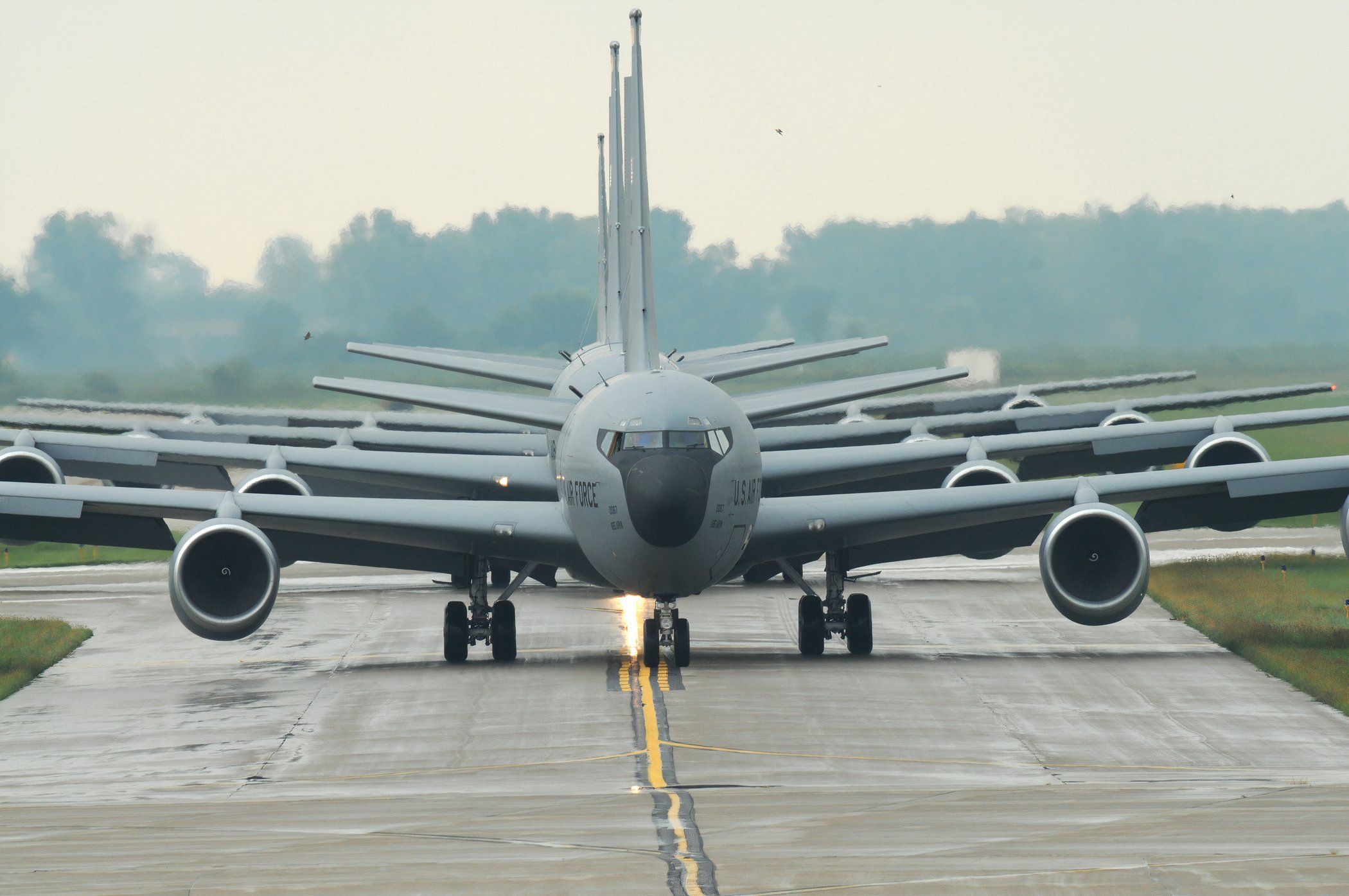 KC-135 Stratotankerは、はるかに一般的なタンカーであり、米国空軍の空中給油能力のバックボーンです。 FlightGlobalは、世界中の386を務めている386をリストしています。空軍はそれらを新しいペガサスKC-46A(ボーイング767に基づく)に部分的に置き換えており、そのタンカーは現在、世界で2番目に一般的です(Flightglobalリスト101)。