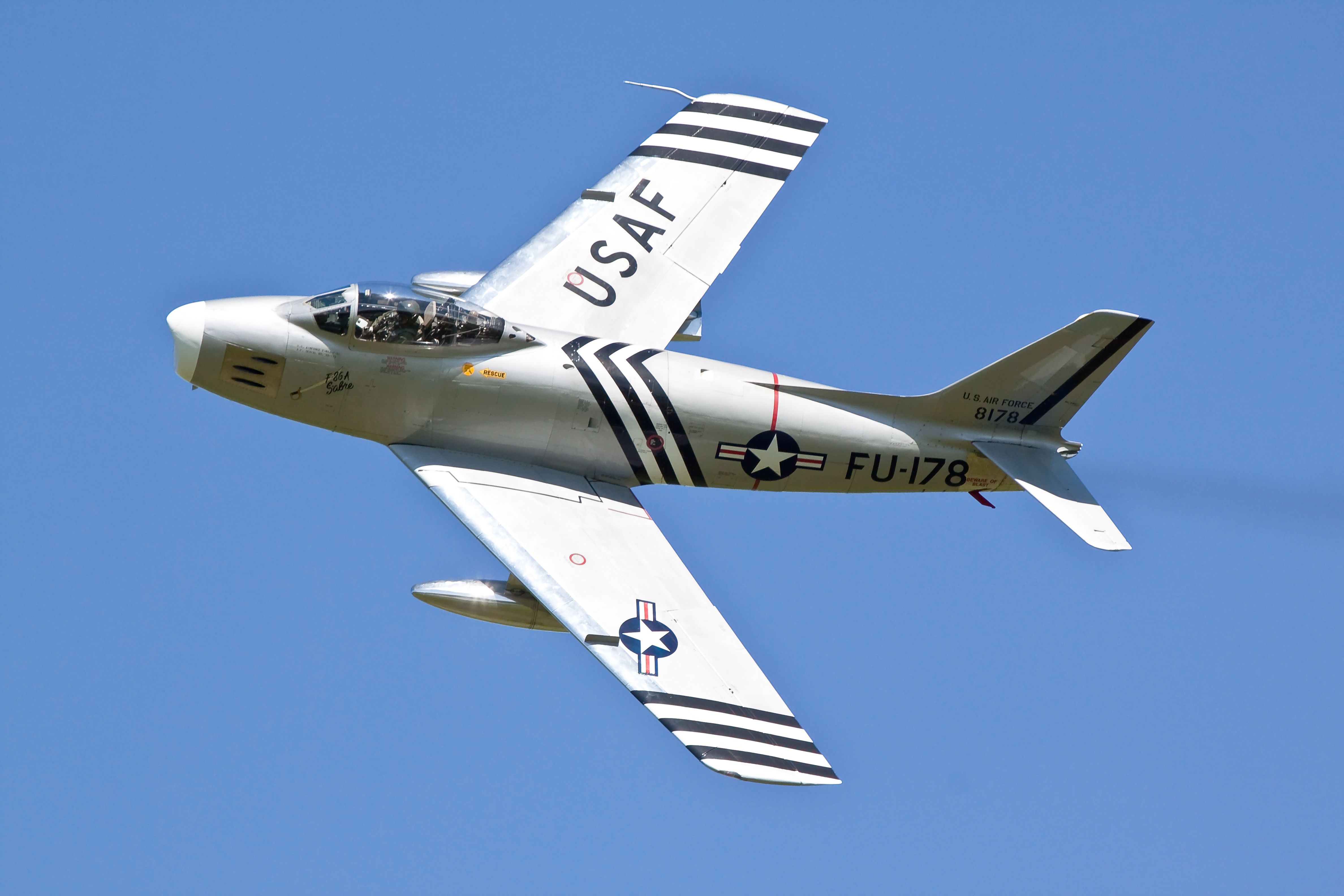 北米F-86セイバーは、北米航空によって設計および開発されたトランスニックファイターです。航空機は1947年10月に最初の飛行を行い、1949年に米空軍と奉仕しました。これは、朝鮮戦争中の高速ドッグファイトでソビエト製のMig-15に対抗する最初の米国に拠点を置くスイープウィングジェット戦闘機です。 2つのジェットは、歴史上いくつかの主要な戦いで直接対戦しました。