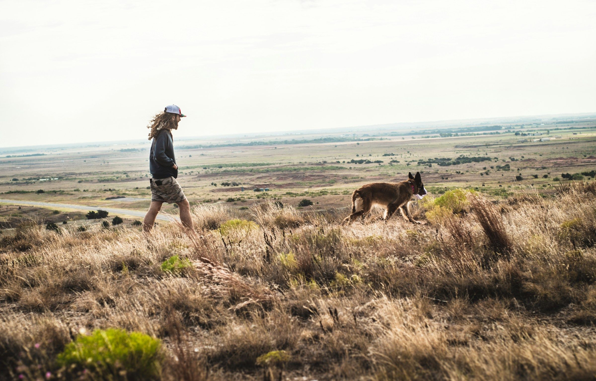 オクラホマ州フェアビューの州立公園にいる人と犬