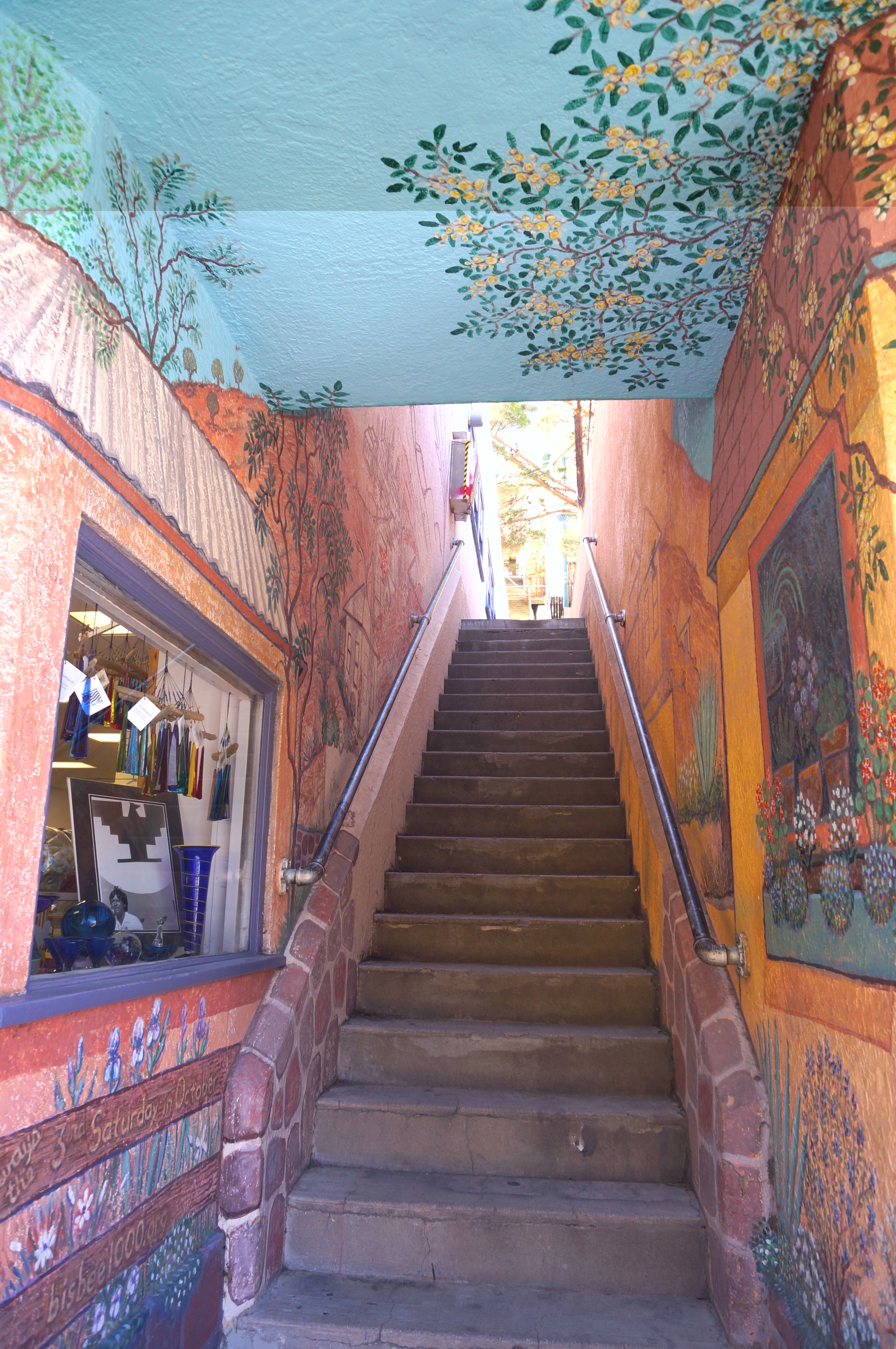 アリゾナ州ビスビーにある美しい壁画のある階段の飛行
