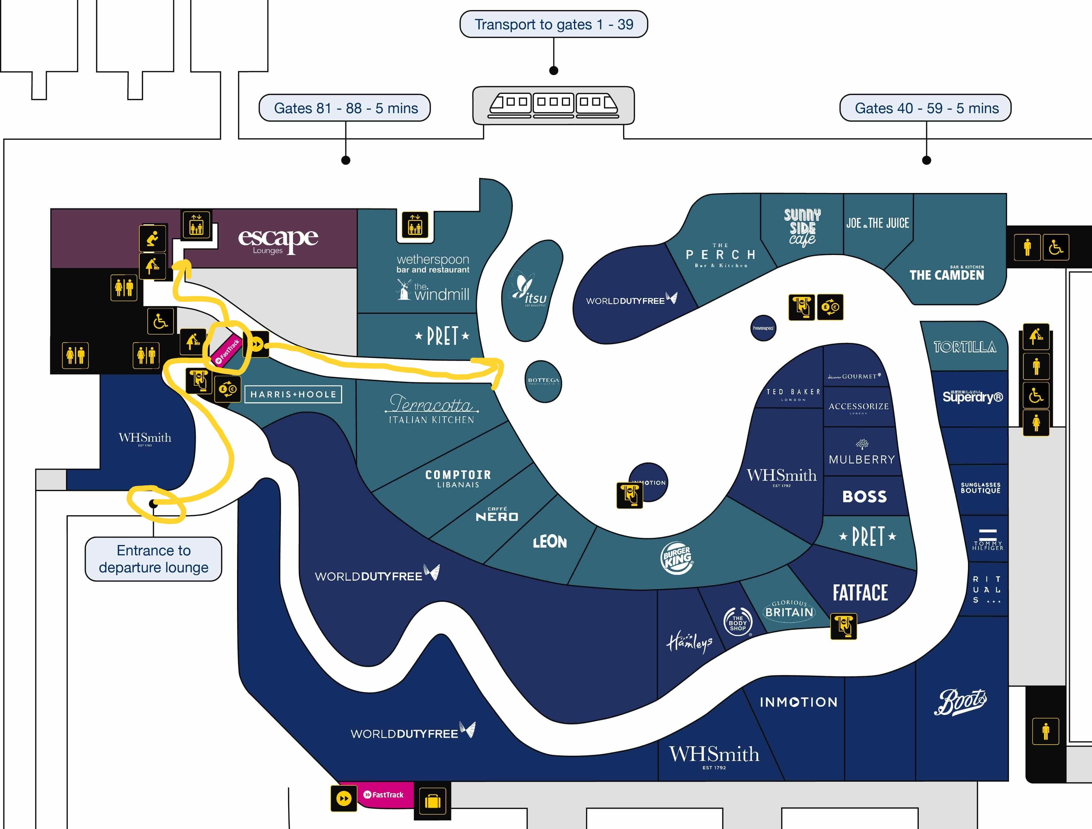 創設メンバーのプレミアムゲストは、ラウンジにアクセスするために免税店エリアを歩く必要はありません。 Head For Pointsは2015年、コンコルド・ルームは原則ではなく例外であり、他のラウンジはすべてショップ内を散策する必要があると指摘した。ただし、ギャラリー ファースト ラウンジでも同様のルートが建設中でした。