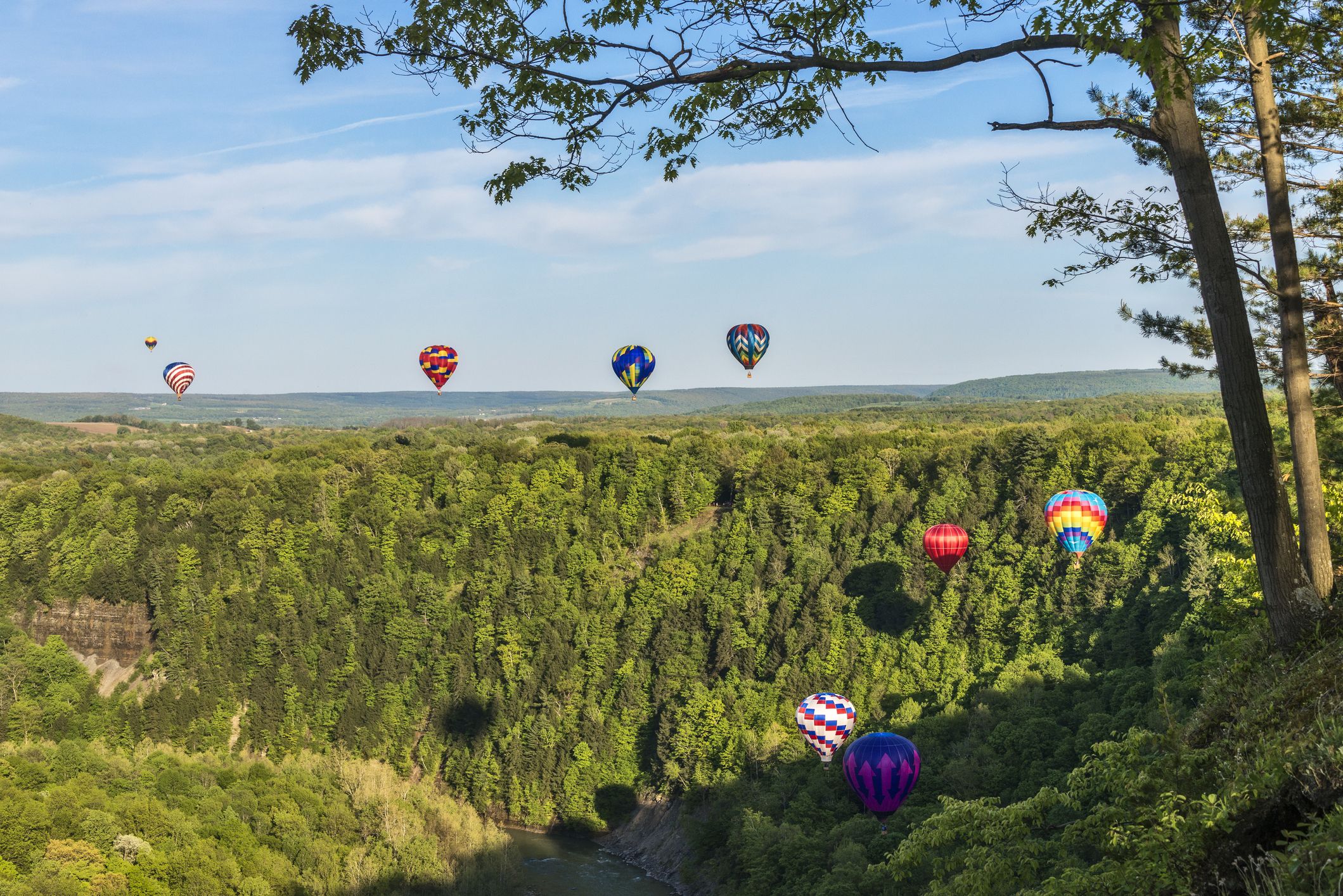 熱気球からは川が削った渓谷、滝、緑豊かな森林、ジェネシー川を約 45 ~ 1 時間、合計所要時間は約 2 ~ 4 時間眺めます。この地域には熱気球に乗れるツアーがいくつかありますが、訪問前に予約する必要があります。