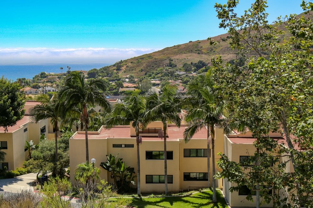 米国カリフォルニア州マリブにあるペパーダイン大学のキャンパスの眺め