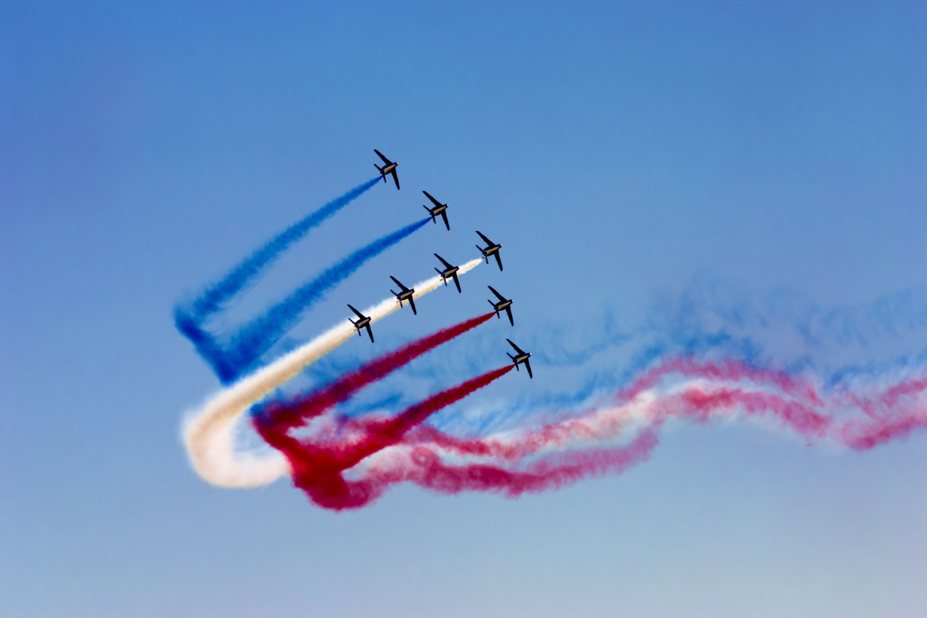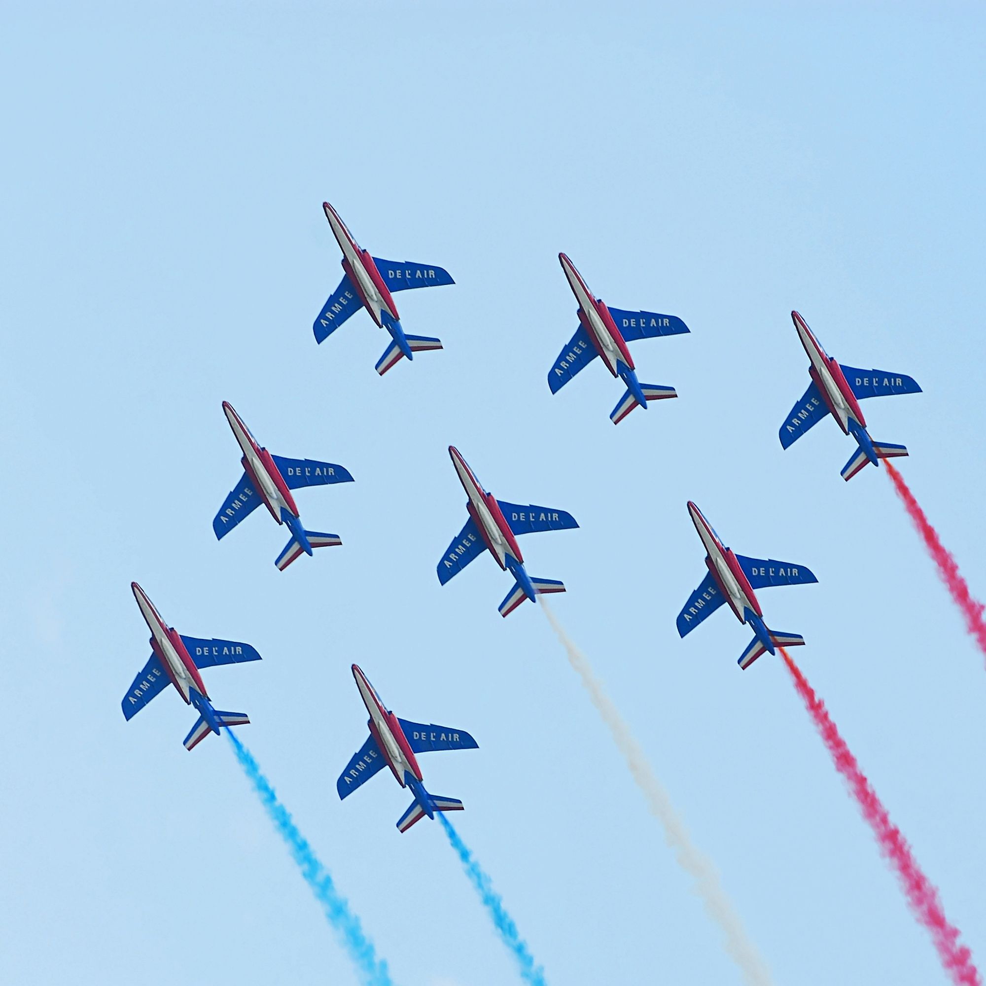 1953 年に就役したパトルイユ アクロバティック ド フランス、またはパトルイユ ド フランスは、世界最高の精密曲技飛行チームの 1 つと考えられています。このユニットが最初に展示を開始したとき、それはアメリカン・リパブリック F-84 サンダージェットを飛行させました。これらは後にダッソー・ミステール IV に置き換えられ、さらにダッソー/ドルニエ・アルファ・ジェットに置き換えられ、最後のエールフランスボーイング 747 のお別れフライトに同行するために使用されました。