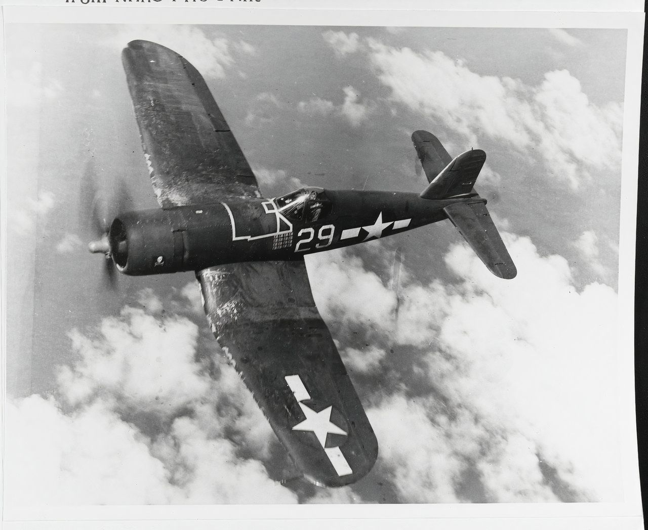 F4Uは、そのユニークな逆カモメの翼のデザインにより、歴史上最も有名な飛行機の1つであり、1942年から1952年まで継続的な生産を続けました。航空機の12,500を超える例が配達されています。海軍と海兵隊の最高級の戦闘機の1人であるコルセアは、第二次世界大戦中に2,140の日本の航空機を撃downしました。第二次世界大戦での同盟国の最終的な勝利の後、象徴的なコルセアはサービスを継続し、特に注目に値するミッションを飛行し続けます。