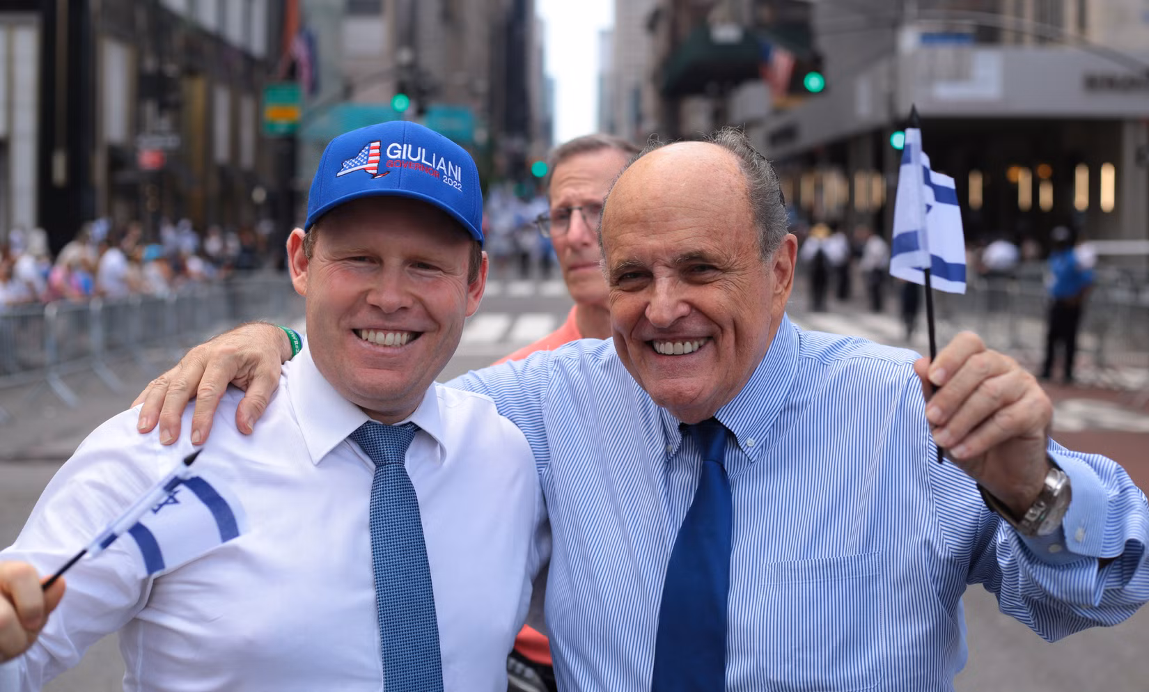 米国ニューヨーク市5番街のニューヨーク市イスラエルパレードに出席したルディ・ジュリアーニと息子のアンドリュー・ジュリアーニクレジット:Shutterstock経由