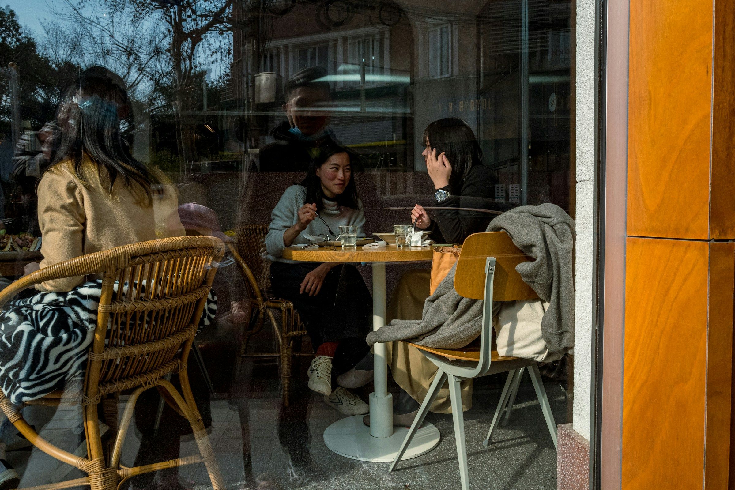 中国・上海のカフェにいる人々