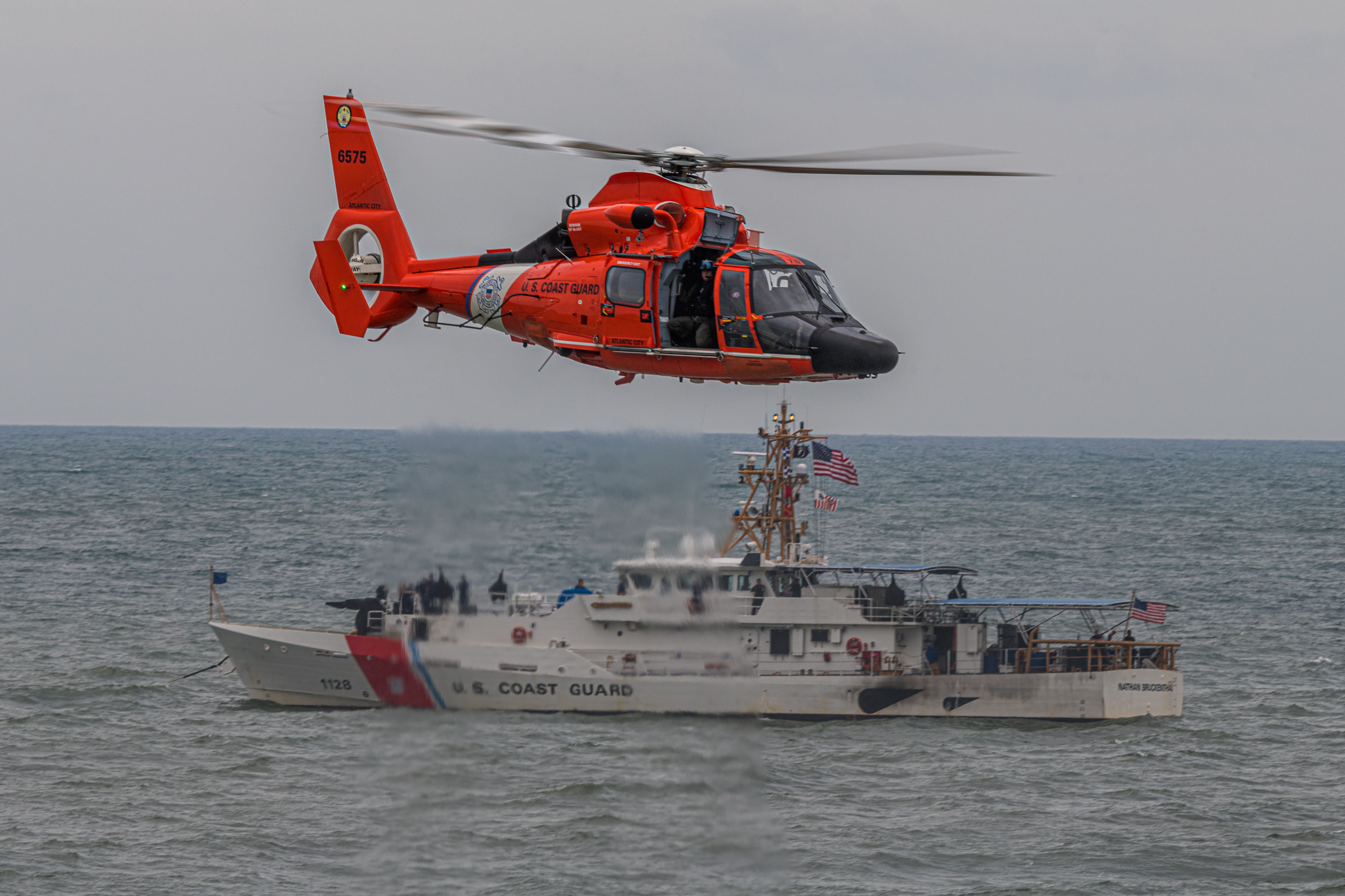 沿岸警備隊のヘリコプターは、ロータリーウィング&スペシャルミッション部門(CG-7112)によって管理されています。沿岸警備隊のロータリー翼艦隊の主力は、1980年代初頭から沿岸警備隊で奉仕してきたHH/MH-65イルカです。沿岸警備隊の州イルカは「…すべてのパンとバターを実施します…操作:SAR、ポートパトロール、海事調査、阻止。」