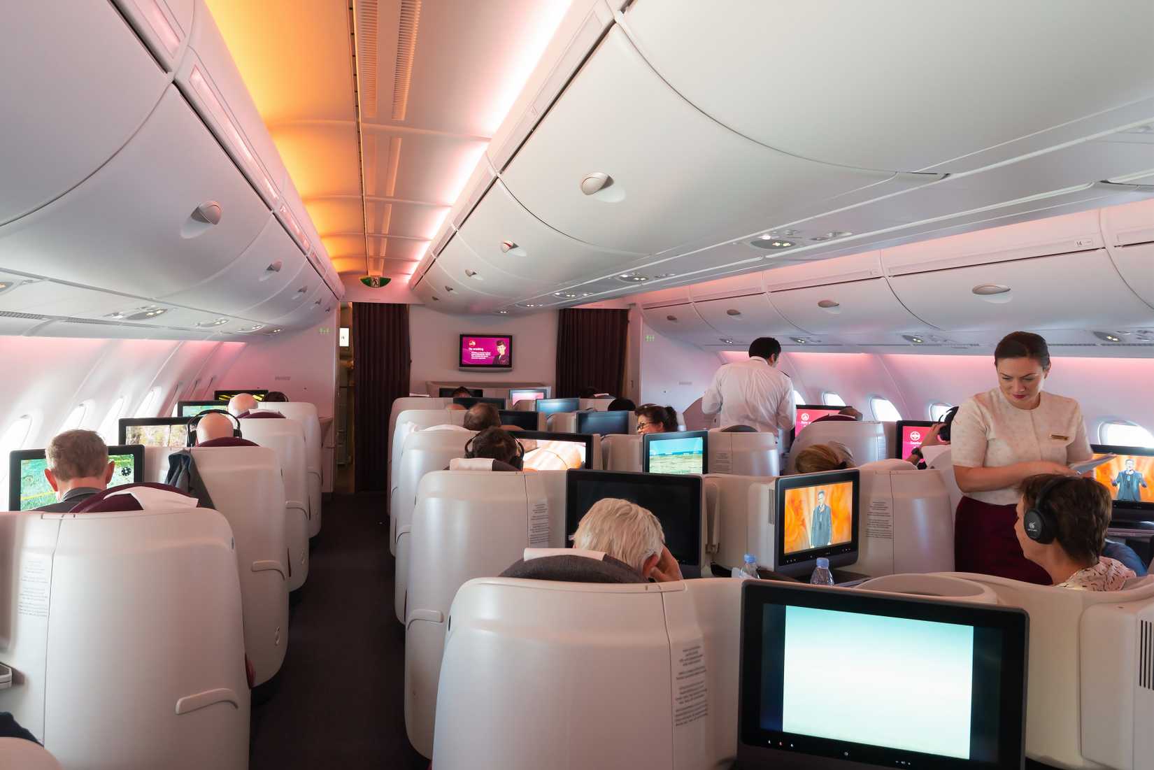 A380 では、窓側の座席の乗客は頭上の収納棚に加えて側壁の収納棚を利用できるため、ほとんどの座席が中央の座席よりも優先されます。これらの座席はほぼ同じですが、カタールではビジネス クラス キャビンの両端に化粧室があり、機内ラウンジはビジネス キャビンの後ろにあり、ギャレーはキャビンの前にあります。したがって、騒音を避けるためには、機内の中央の座席が最適です。
