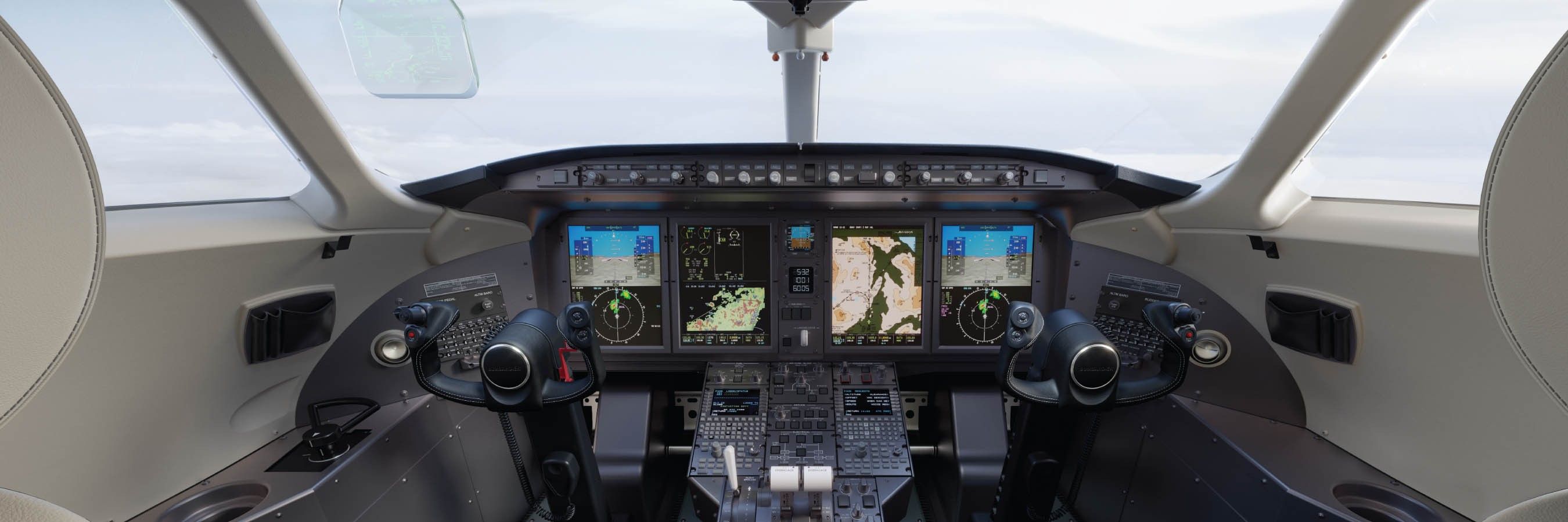 コックピットには、没入型のヘッドアップ ディスプレイ (HUD) と拡張ビジョン システム (EVS) が装備されており、高度なアビオニクス スイートを補完して、航空機を最もシンプルかつ安全に飛行させることができます。アビオニクス スイートには、合成ビジョン システム、デュアル フライト管理システム、MultiScan 気象レーダーなどが含まれます。これらの高度な機能により、航空機は今後何年にもわたって航行および飛行の安全基準に準拠し続けることが保証されます。