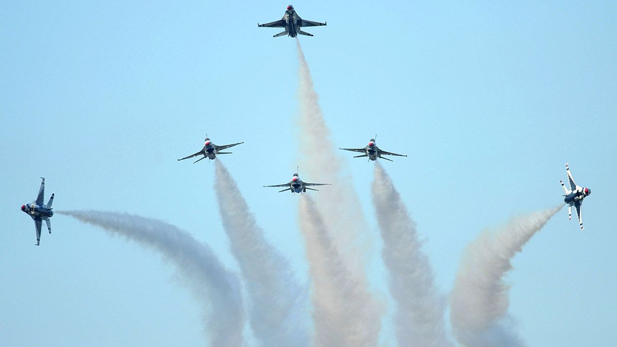 サンダーバードのデモンストレーションは、6 機の航空機がデルタやダイヤモンドなどの編隊と単独飛行を組み合わせて飛行することで構成されています。これらのスタントは、F-16 最前線戦闘機の驚異的な能力だけでなく、アメリカ空軍パイロットの比類のないスキルと精度も示しています。