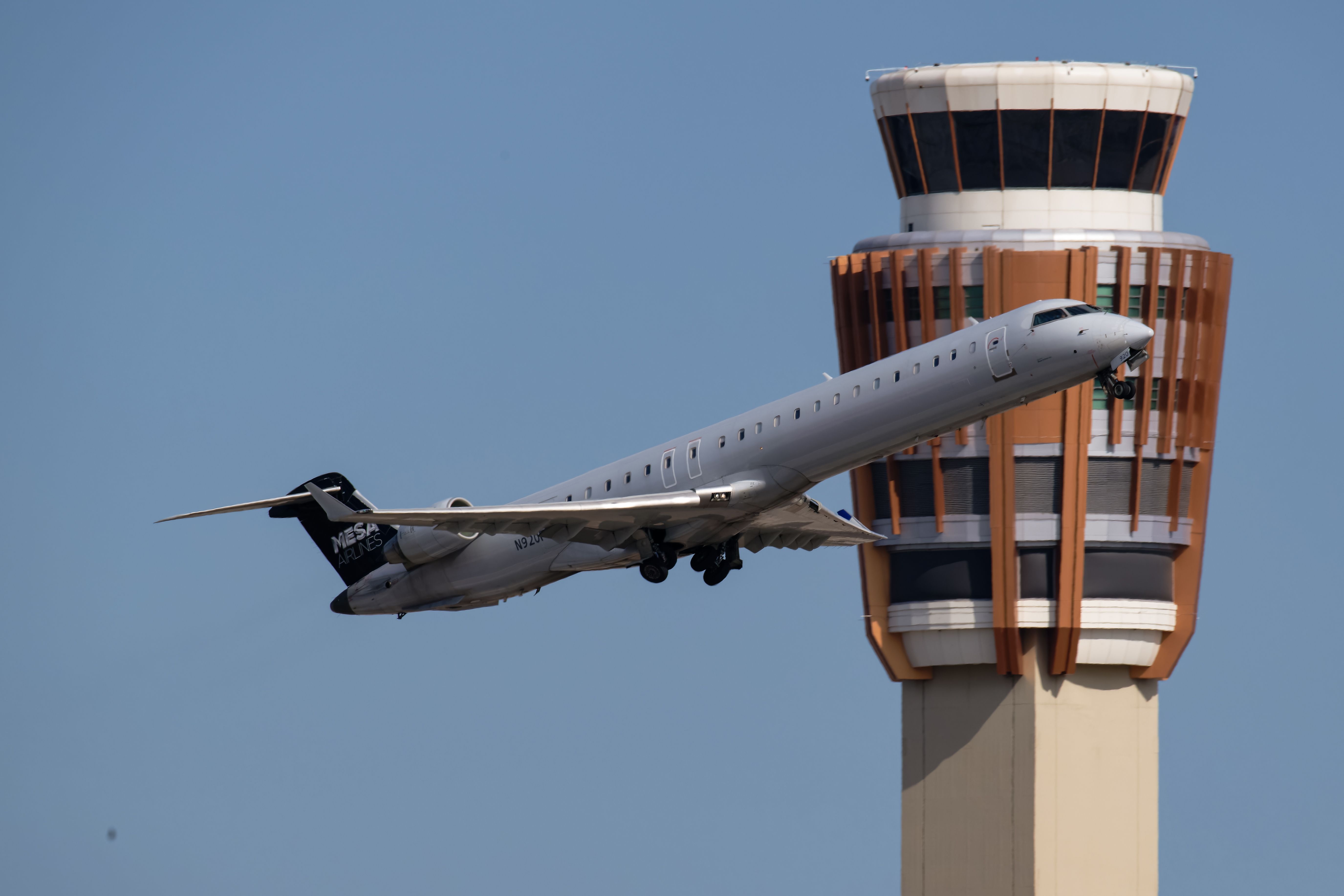 メサ航空がボンバルディアCRJ900事業をユナイテッド航空に移すために契約を結んだ約1年後、艦隊はまだシカゴに拠点を置くキャリアの象徴的なエボブルーのカラーリングを着用していません。以前はアメリカのイーグルブランドの下で10年以上運営されていた航空機は、メサの簡素化された家の色を特集しています。