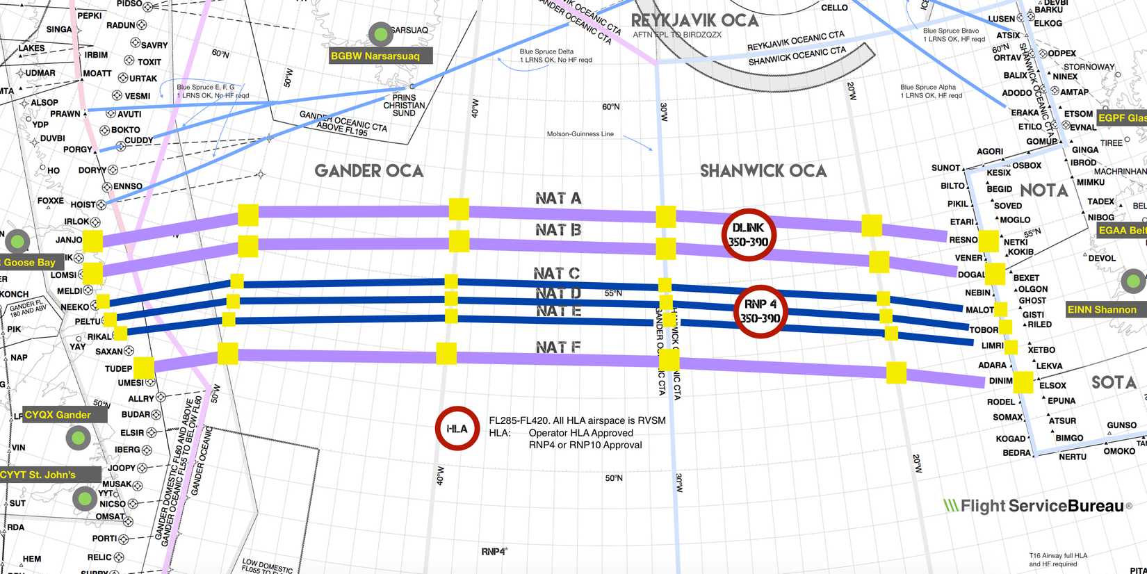 北大西洋上空を飛行することは、地球上の他の場所を飛行することとは異なります。毎晩、狭胴機から広胴機まで数百機の長距離ジェット機が、北大西洋組織化軌道システム (NAT-OTS) と呼ばれる目に見えないルートの広大なネットワークを使用して、ヨーロッパと北米の間の海を横断しています。
