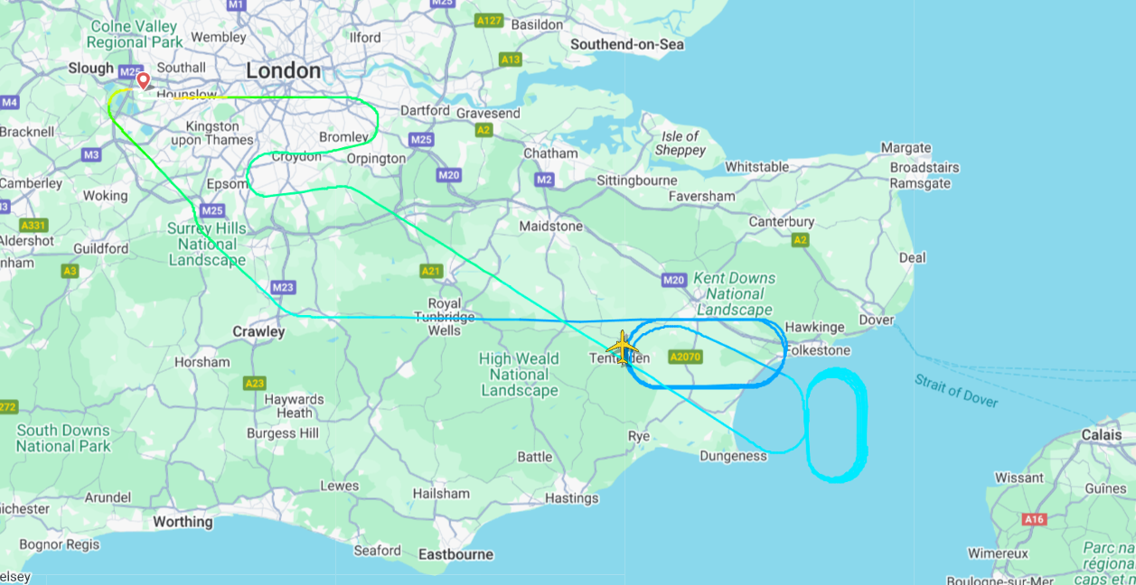 からのデータフライトレーダー24航空機がイングランド南東部と英仏海峡の上空で 2 つの異なる保持パターンに入り、パイロットがトラブルシューティングを試みた際に燃料を投棄した様子が示されています。同機はロンドン・ヒースロー空港に戻る前にFL150からFL120に降下し、離陸から90分以上経った14時53分に滑走路27Lに安全に着陸した。すべての民間ジェット機が燃料を投棄する機能を備えているわけではありませんが、787 には 3 つの燃料タンクすべてにこの機能があります。