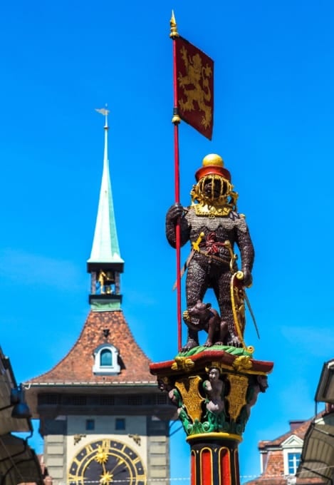その中で最も有名なのは、ツェーリンガー家の旗が掲げられたツェーリンガーの噴水です。一見、騎士のように見えますが、よく見ると、ベルンのシンボルとして親しまれているクマです。このユニークなディテールをご覧いただけるチャンスをお見逃しなく。