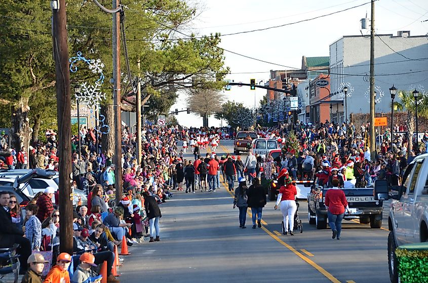 サウスカロライナ州レキシントンのレキシントンクリスマスパレード中に人々でいっぱいの通り。 salvationistdan - 独自の仕事、CC by-sa 4.0、ウィキメディアコモンズ。