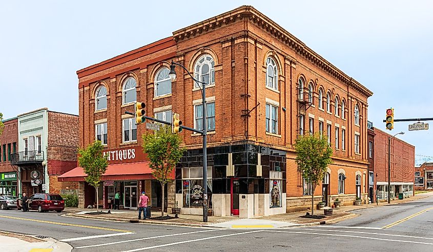 サウスカロライナ州セネカの魅力的なダウンタウンエリア。編集クレジット:Cheri Alguire / Shutterstock.com
