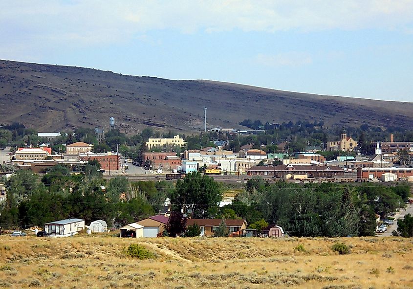 素朴な建物が並ぶワイオミング州ローリンズのダウンタウン。 (Vasiliymeshko 著 – 自身の著作、CC BY-SA 4.0、ウィキメディア コモンズ。)