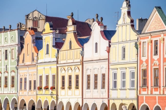チェコ共和国で最もロマンチックな町の 1 つと考えられているテルチ歴史地区は、ユネスコの世界遺産に登録されています。ルネサンス時代に築かれたこの街には、パステルカラーの愛らしい家々が並び、魅惑的な雰囲気を醸し出しています。