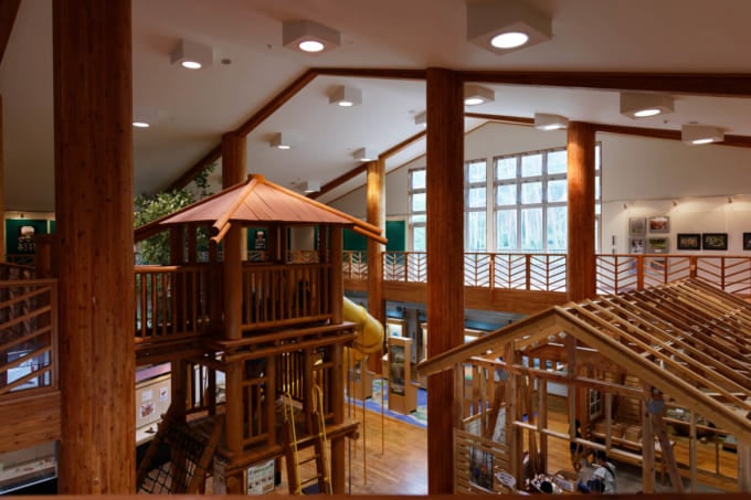入り口近くには、木の素晴らしさに焦点を当てた発見センター「フォレスティ」があります。展示では、木の役割、地元の野生動物、木のおもちゃや楽器などを探ります。